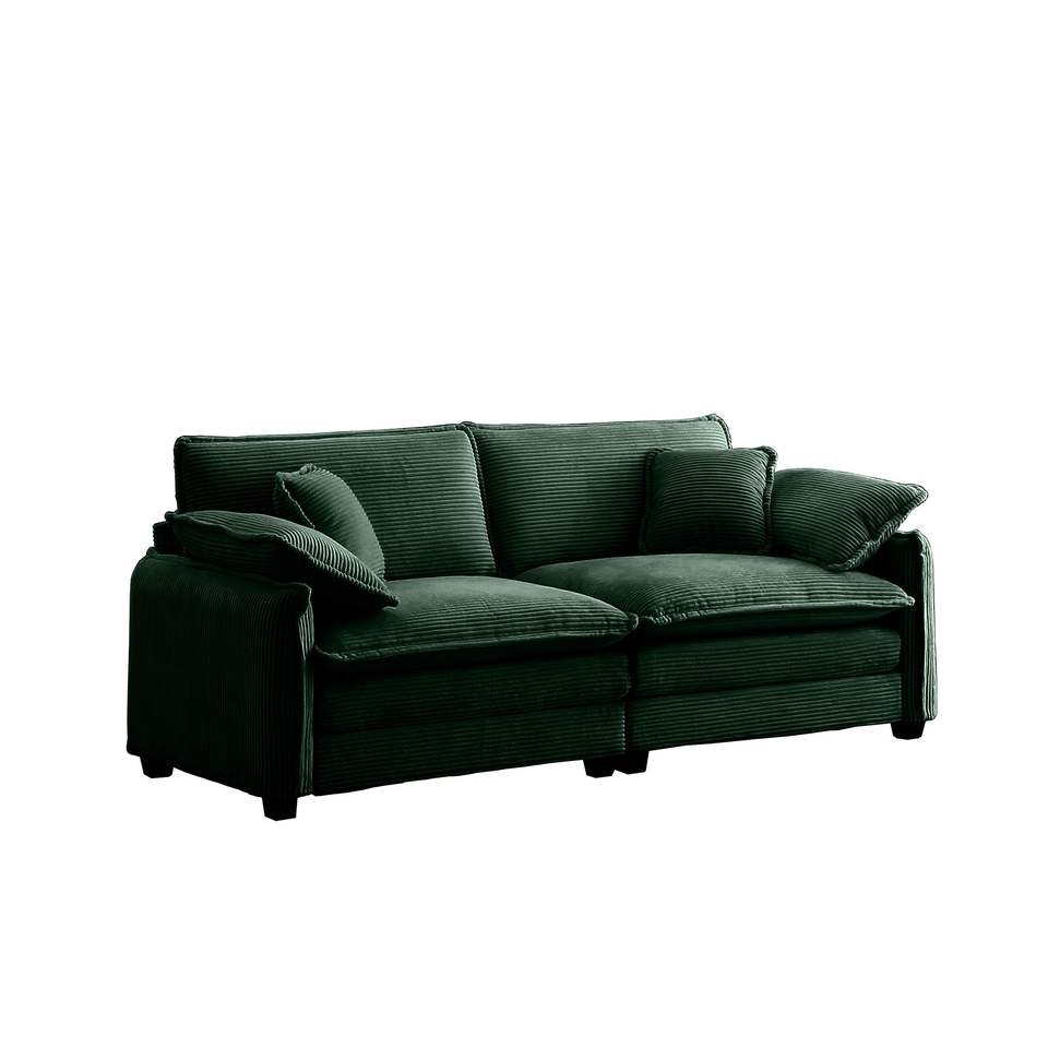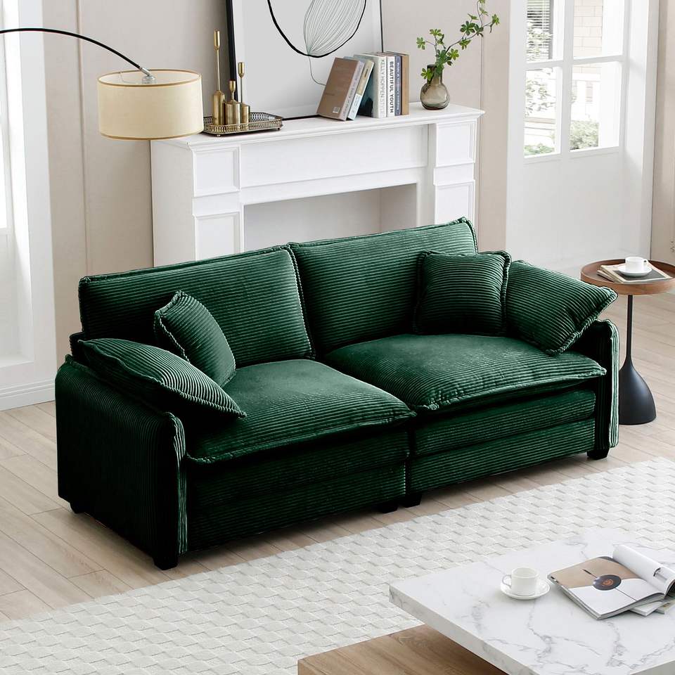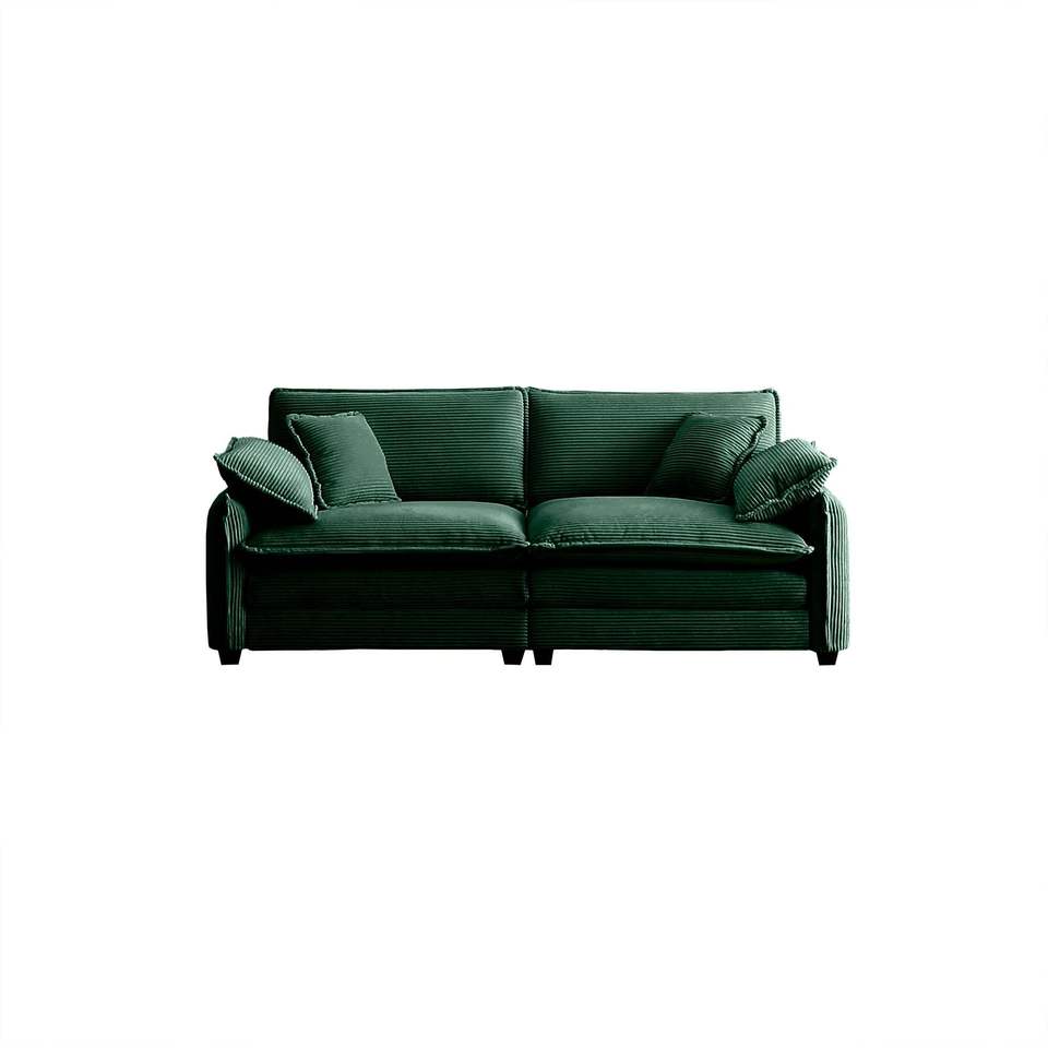 Divano a 2 Posti in Velluto a Coste Verde, Caldo e Accogliente, con 4 Cuscini, Seduta Profonda e Ampia, Imbottito per Soggiorno