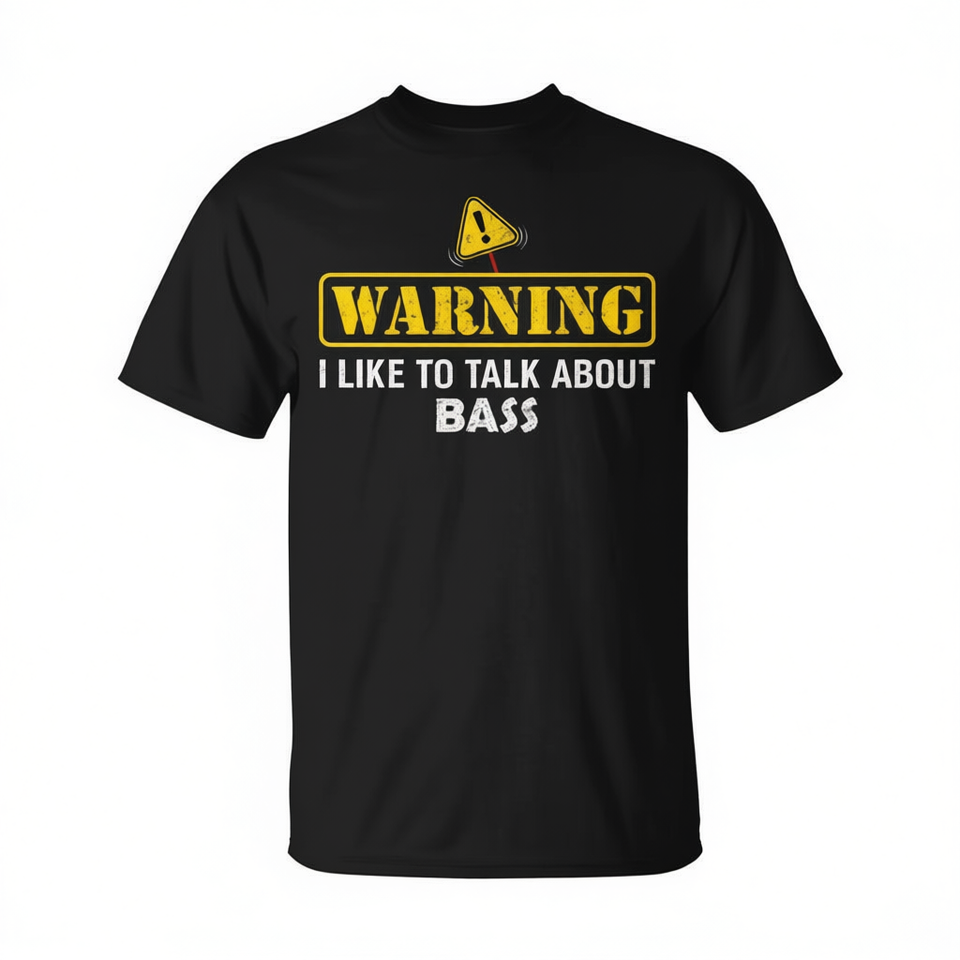 Maglietta promozionale unisex a maniche corte con scritta 'Warning I Like To Talk About Bass' per adulti
