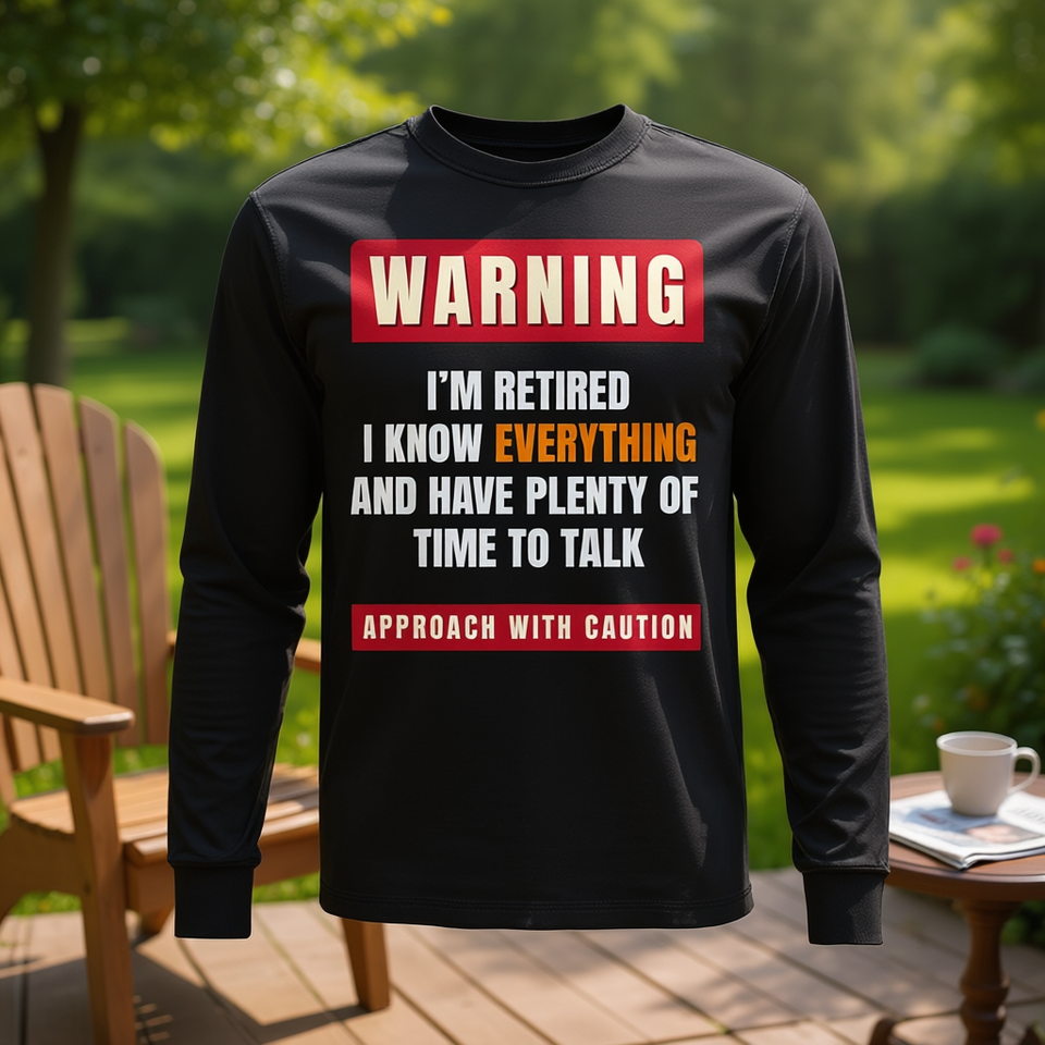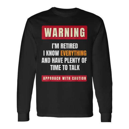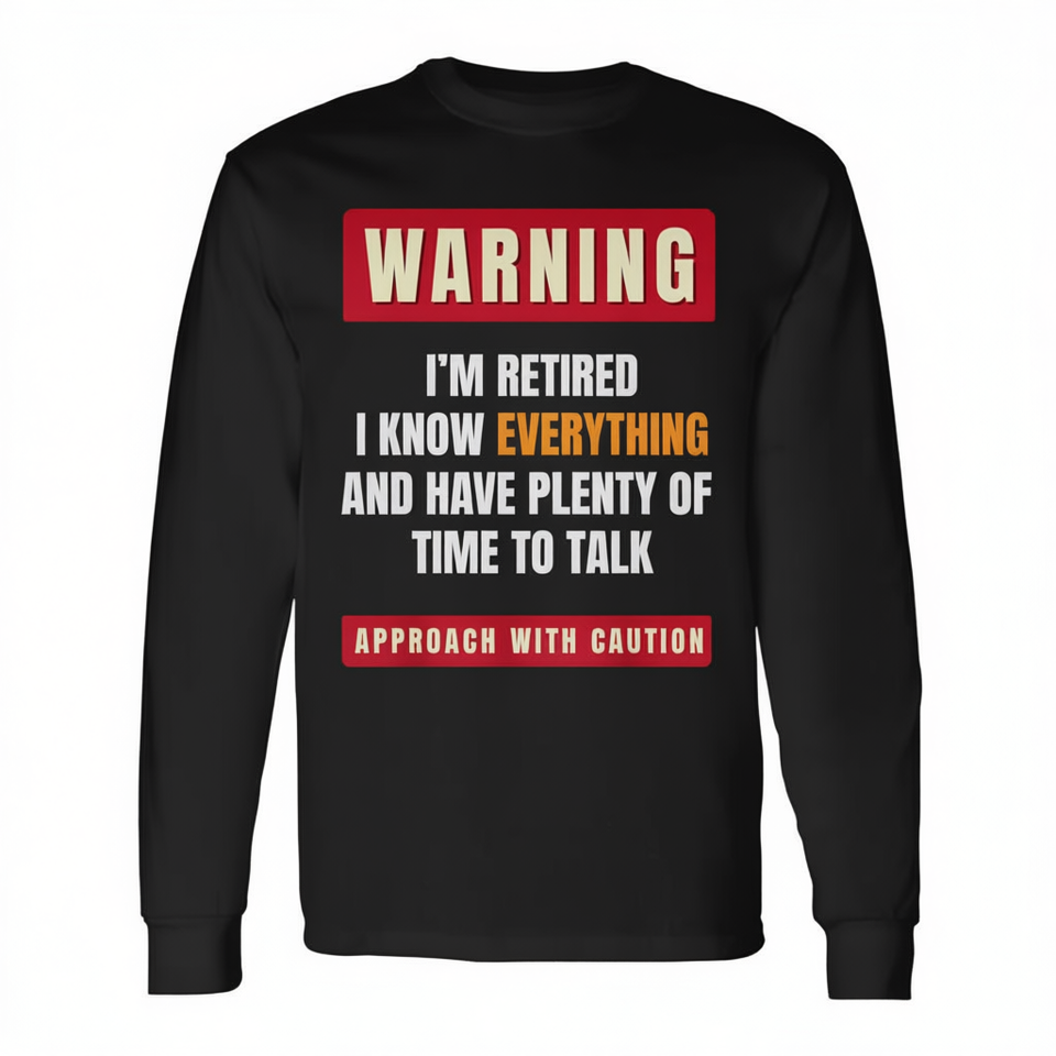Maglietta a maniche lunghe con stampa 'Attenzione, sono in pensione, so tutto' - Regalo per anziani