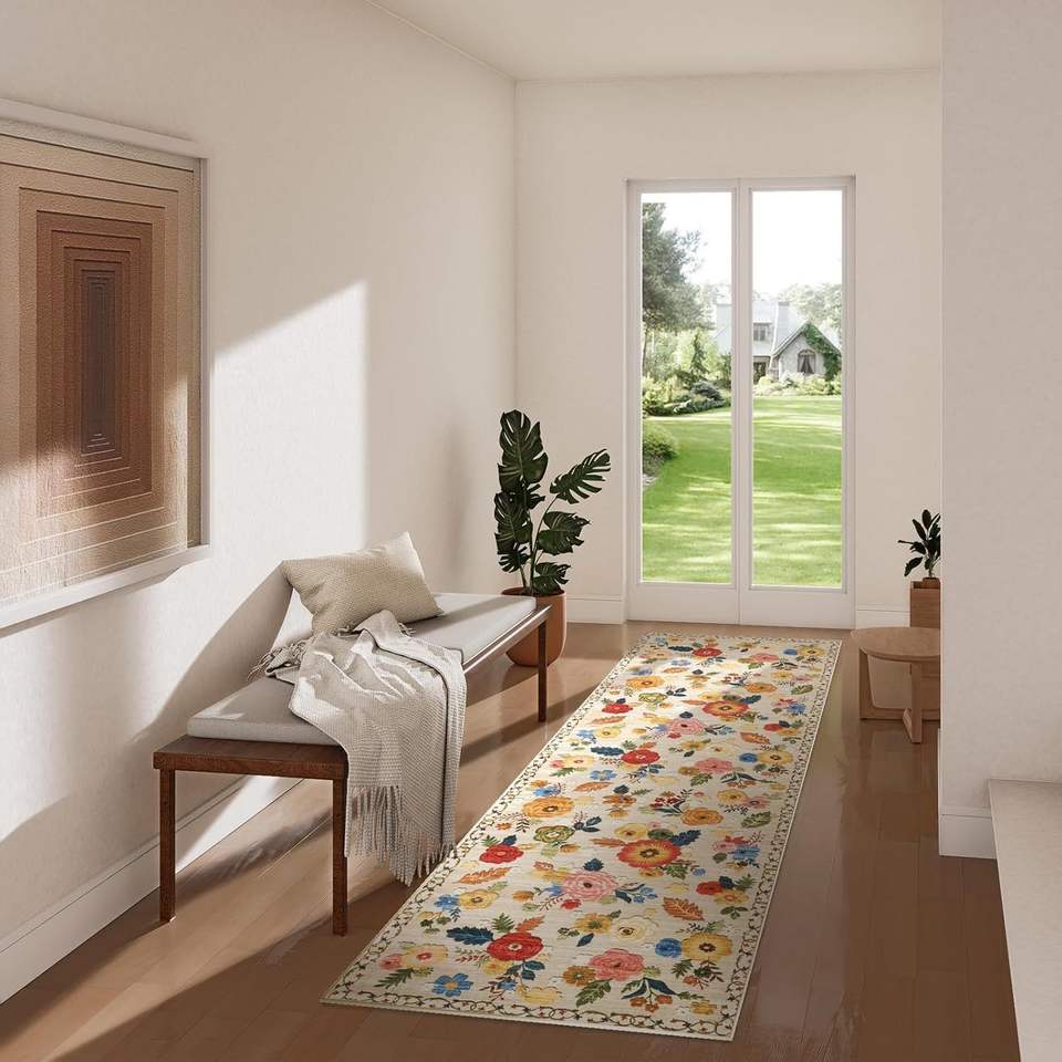 Tappeto Lavabile 2x3 Floreale per Interni, Antiscivolo, Piccolo Tappetino d'Ingresso con Resistenza alle Macchie, Tappeto a Pelo Corto