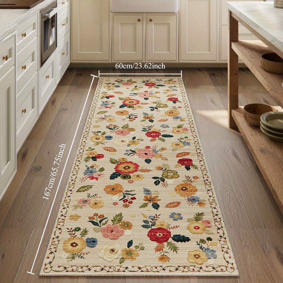 Tappeto Lavabile 2x3 Floreale per Interni, Zerbino Antiscivolo Resistente alle Macchie a Pelo Corto per Piccole Ingressi e Corridoi