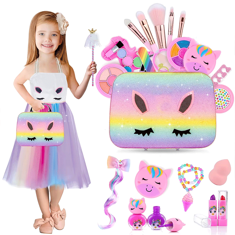 Set Cosmetico Lavabile Come Regalo di Compleanno con Borsa, Set Trucco per Bambine di 4 5 6 7 8 9 10 Anni