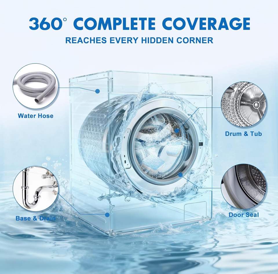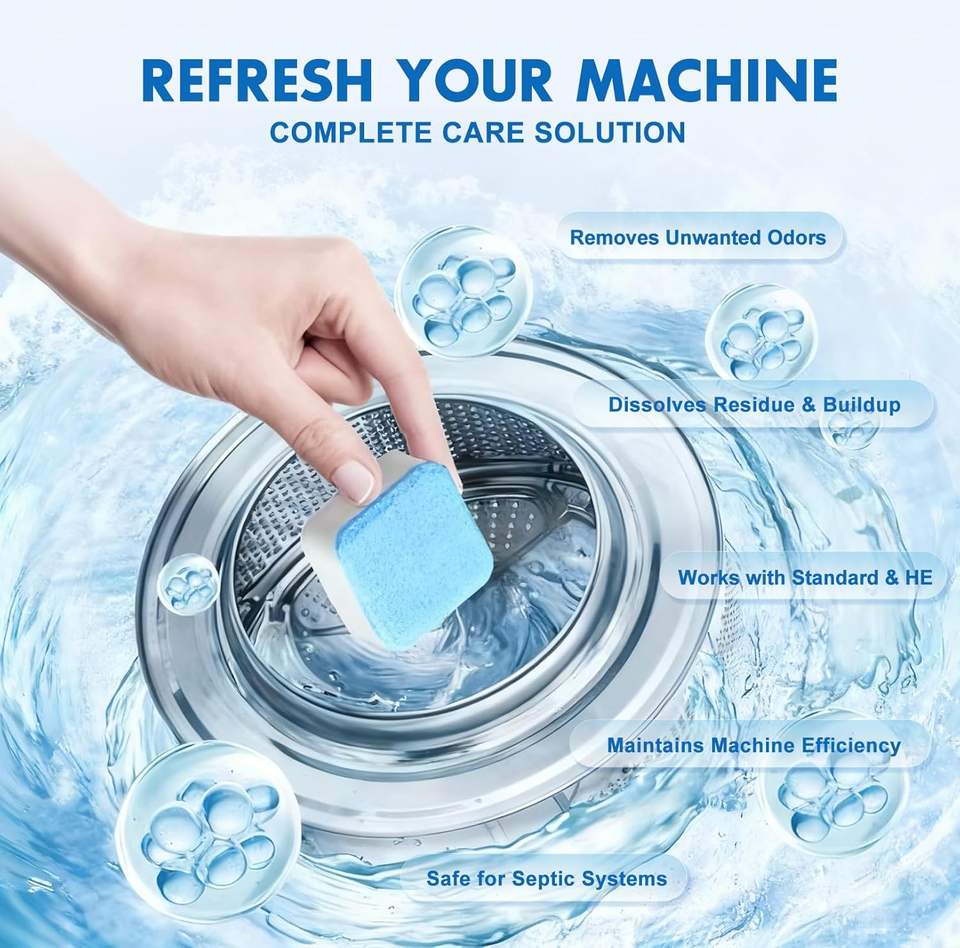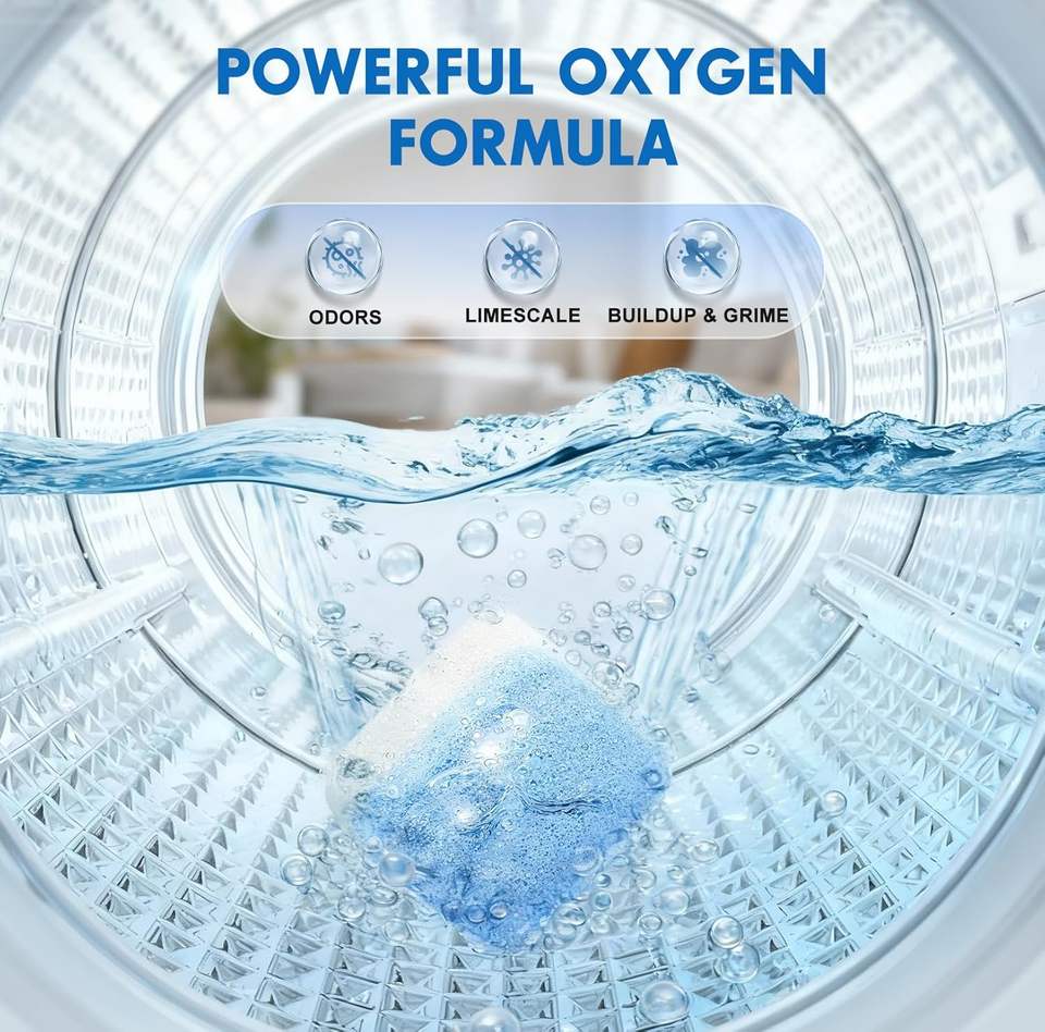 Pastiglie Detergenti per Lavatrice, Confezione da 24, Detergente Disincrostante per Vasca della Lavatrice, Capsule per Pulizia Profonda Domestica