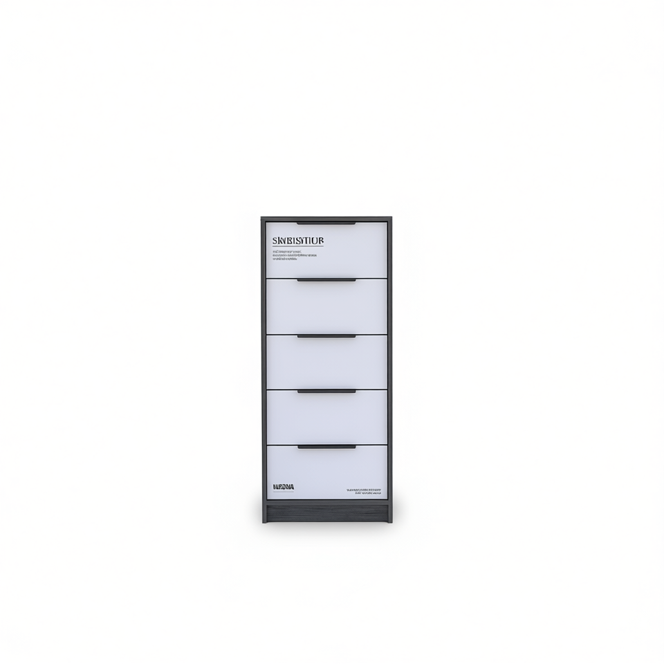Comò a cinque cassetti Washington, design moderno con pannelli in legno, mobile da camera da letto autoportante in MDF