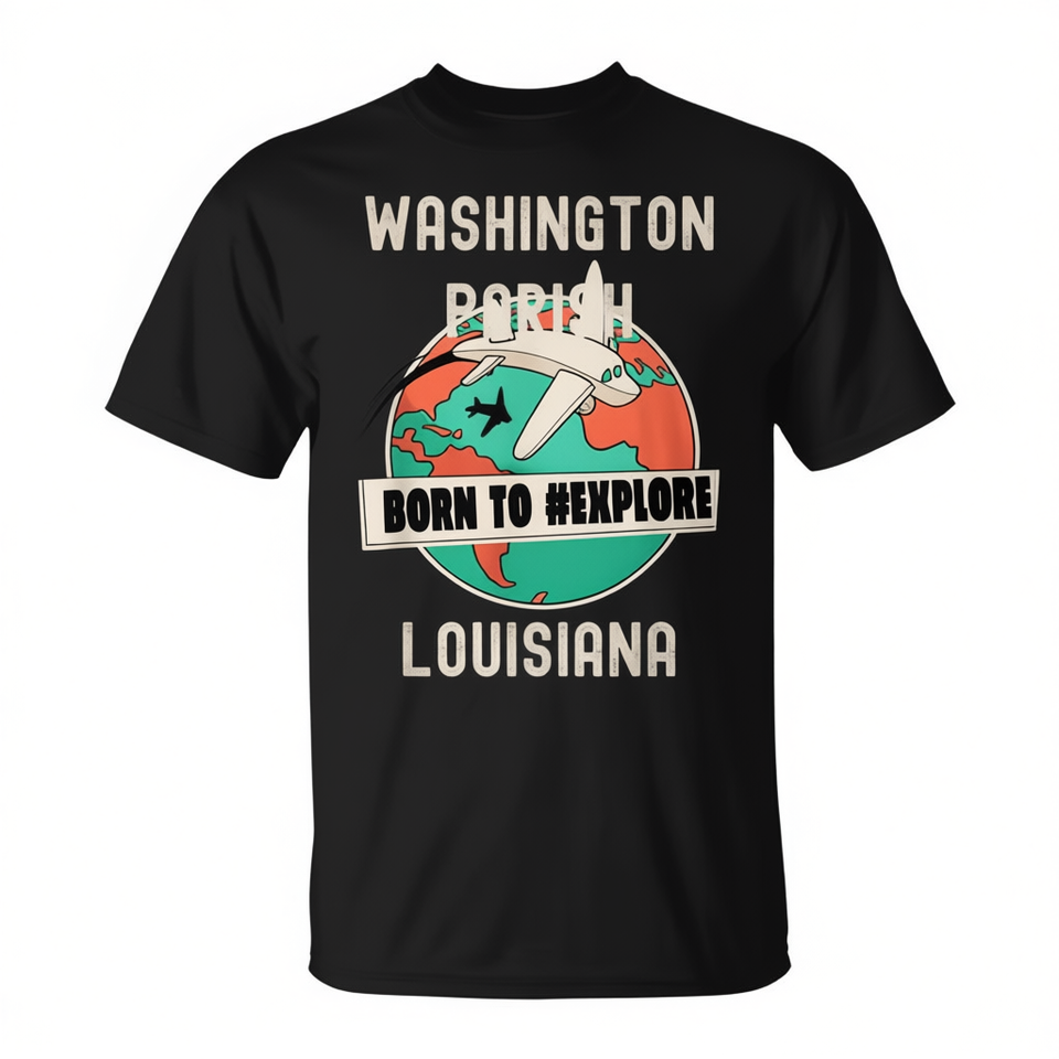T-shirt per amanti dei viaggi Born To Explore della parrocchia di Washington, Louisiana