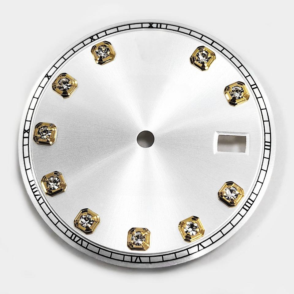 Quadrante per Orologio con Diamanti Dorati e Numeri Romani Argentati per Orologio da 36mm 1601, Compatibile con Movimento 1570 1575, Parti di Ricambio Aftermarket per Orologi.