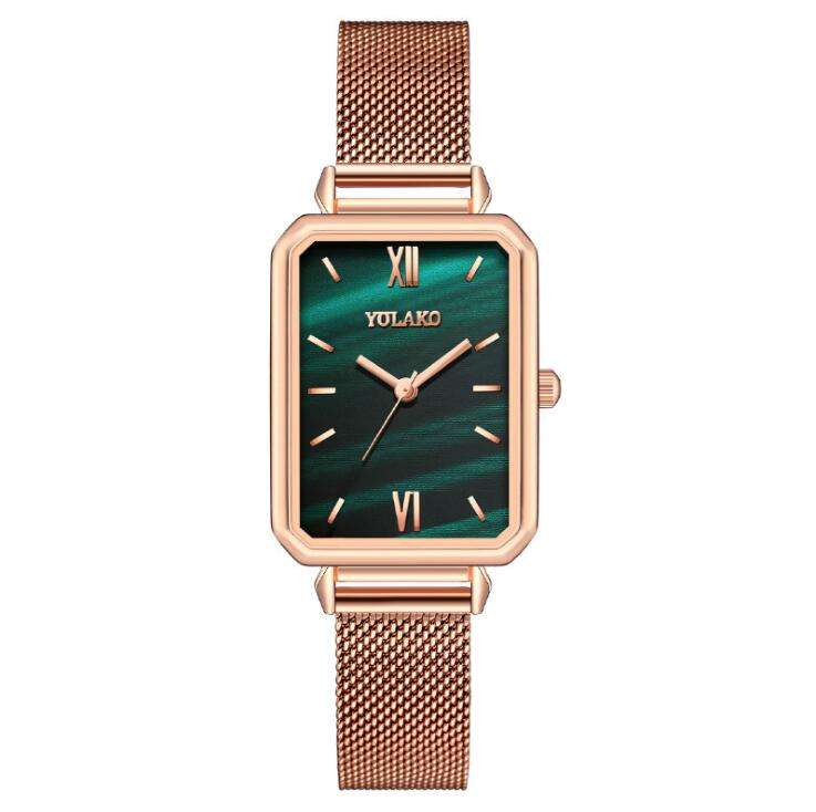 Watch Women Watches Top Brand Luxury Fashion Rectangular Small Green Watch Ladies Ultra-thin Quartz Wristwatch YK2002