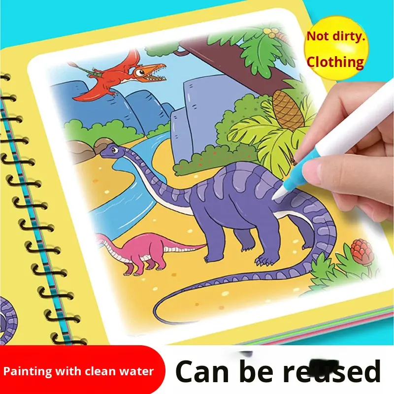 Libro da colorare con acquerelli per bambini, con spirale, carta magica riutilizzabile, set da disegno e colorazione per bambini e bambine, multicolore