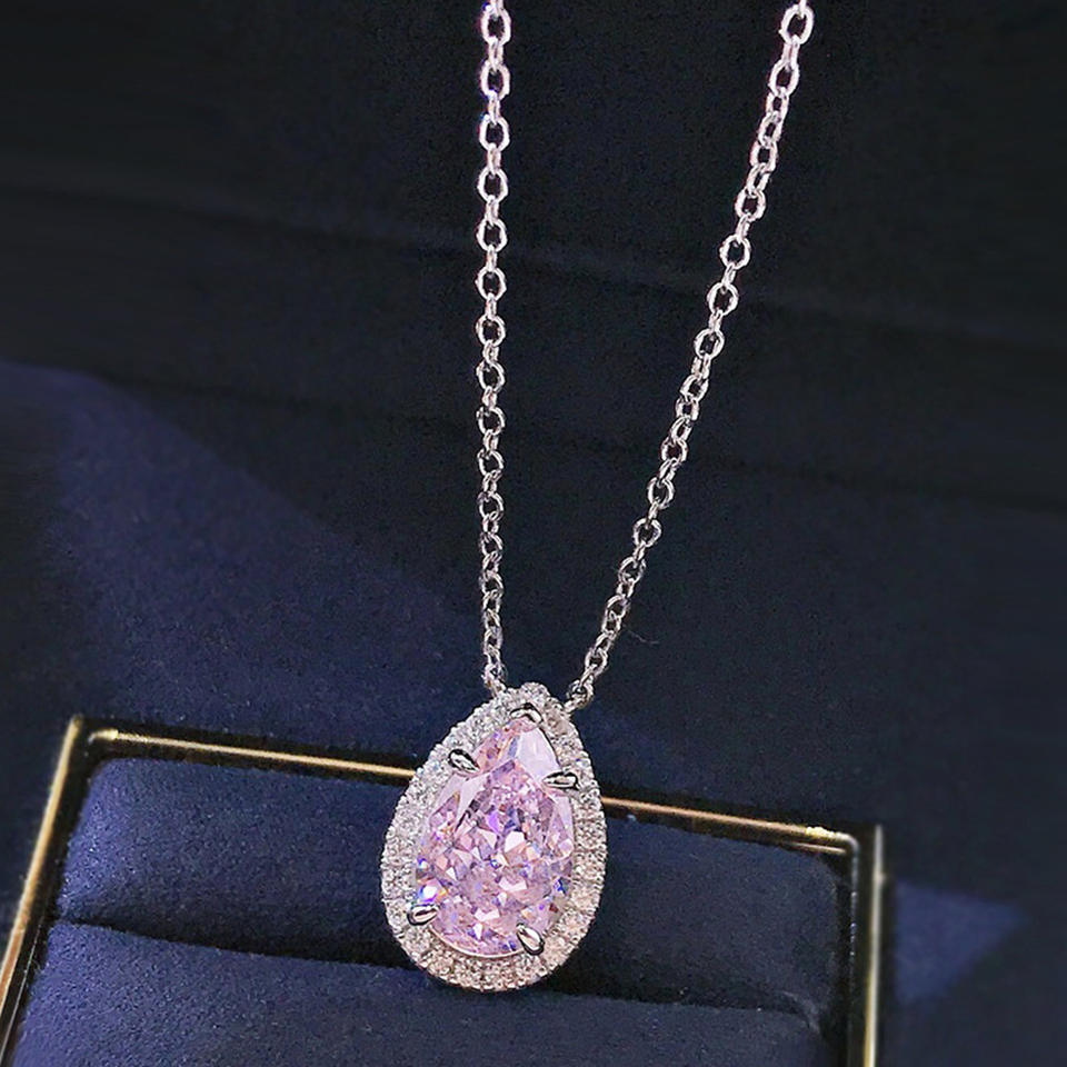 Collana con Pendente a Goccia d'Acqua in Quarzo Rosa, Argento 925 Placcato Rodio, Gioielli di Lusso da Donna per Matrimonio