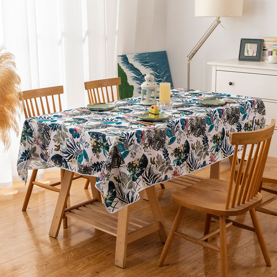 Water-Repellent 100% Polyester Floral Pastoral Style Rectangular Tablecloth Washable Reusable for Home Kitchen & Dining Room Use