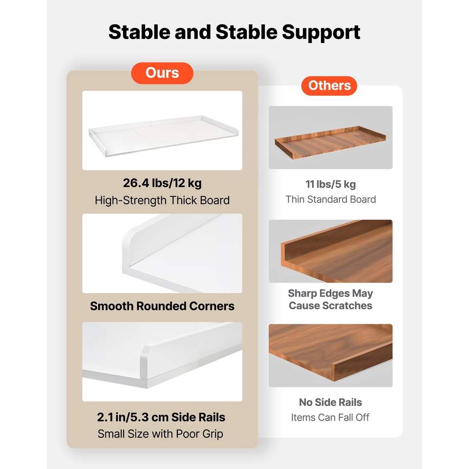Piano d'appoggio in legno impermeabile 54 x 27,5 pollici per lavatrice/asciugatrice con 2 ganci e bordo superiore per montaggio a parete