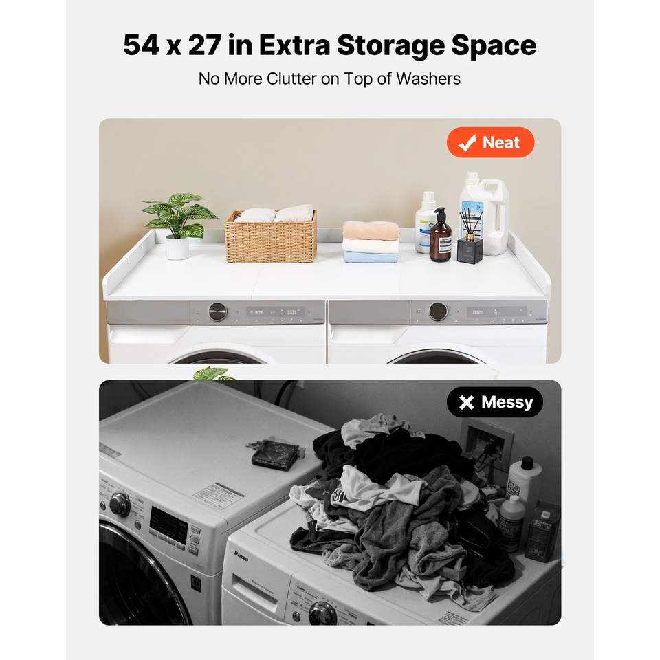 Supporto per Lavatrice e Asciugatrice in Legno Resistente all'Acqua 54 X 27.5 Pollici con 2 Ganci per Cesti in Vimini