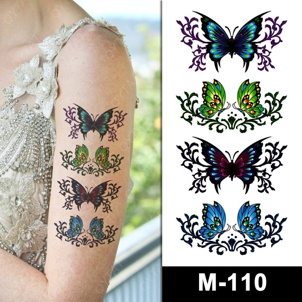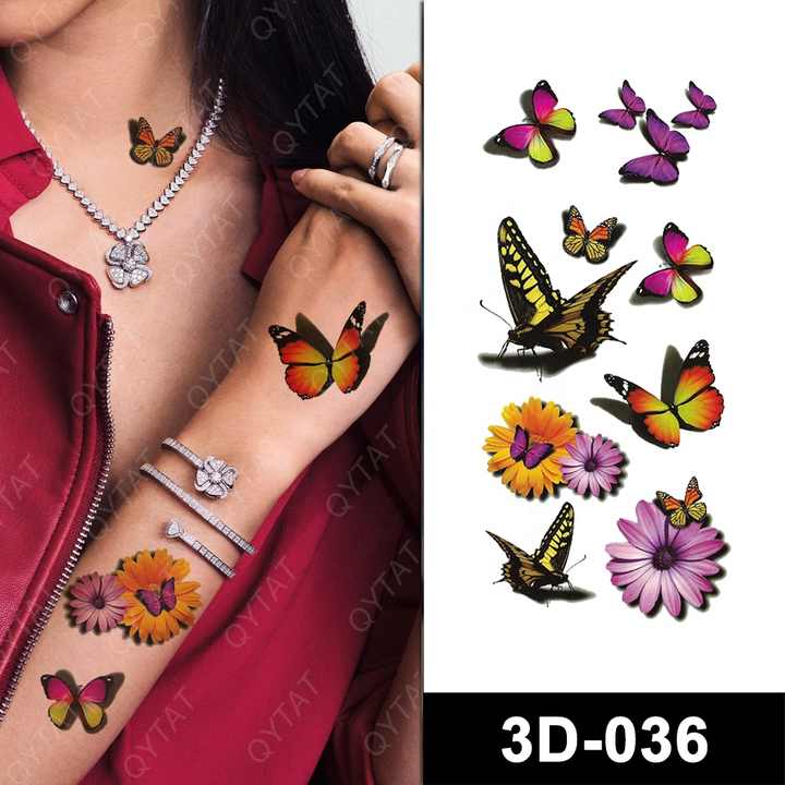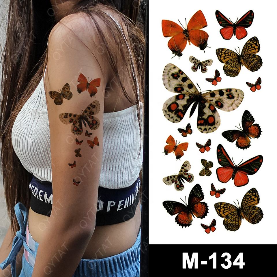 Adesivo Rimovibile per Corpo e Braccia con Trasferimento ad Acqua, Design Floreale Sexy, Tatuaggio Temporaneo Finto a Farfalla