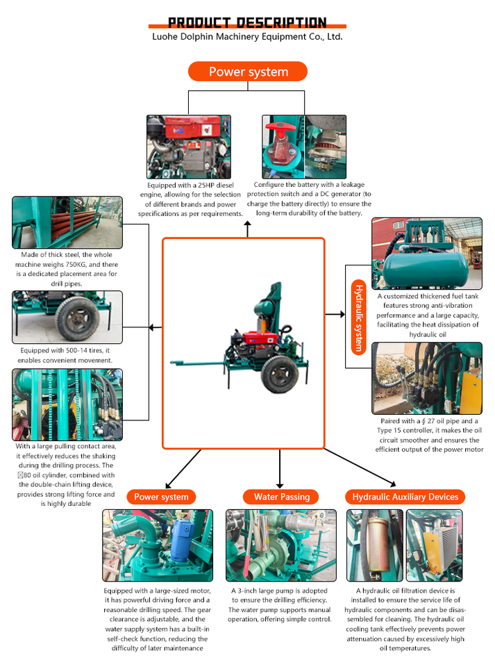 Impianto di perforazione per pozzi d'acqua per la roccia profonda di perforazione con motore Diesel 25hp impianto di perforazione per pozzi d'acqua