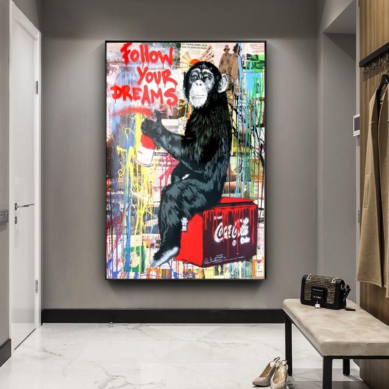 Watercolor Oil Paintings Street Wall Art Graffiti Pop Canvas Follow Your Dreams Print for Living Room Decor Urban Style