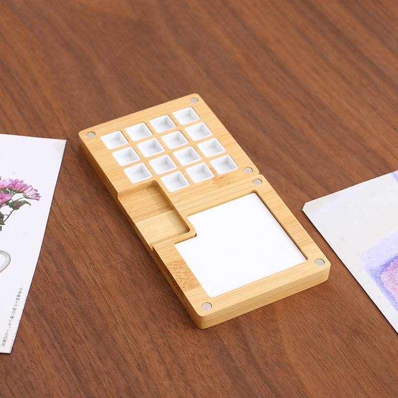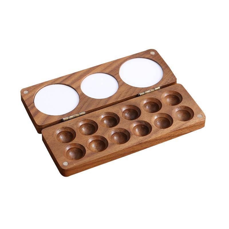 Tavolozza per Acquerelli in Legno a Forma di Libro con Vassoio Magnetico per Colori a Olio, Mini Scatola Porta Colori in Noce Nero