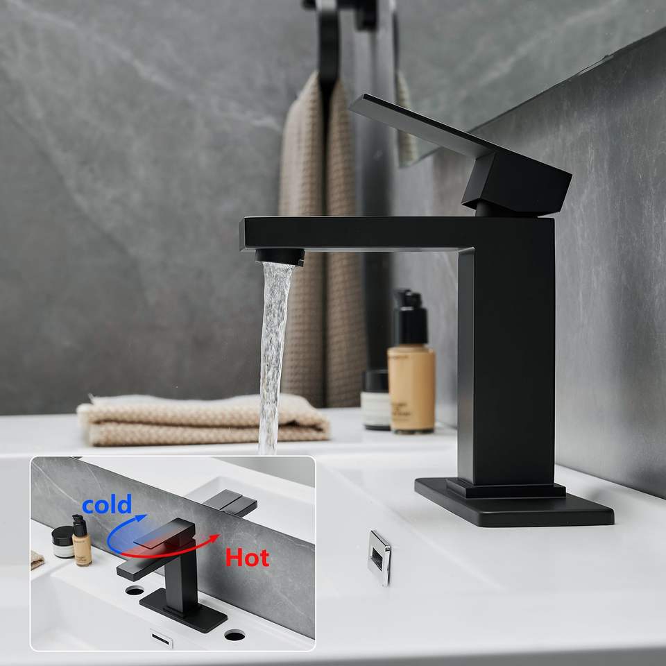 Rubinetto per lavabo a cascata nero a 1 foro con maniglia singola, scarico a scomparsa, tubi di alimentazione e piastra di montaggio - Categoria Prodotti: Rubinetti Bagno