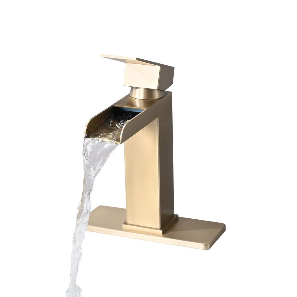 Rubinetto da Bagno Monocomando a Cascata Oro Spazzolato, 1-3 Fori, con Piastra di Fissaggio Solida per Lavabo