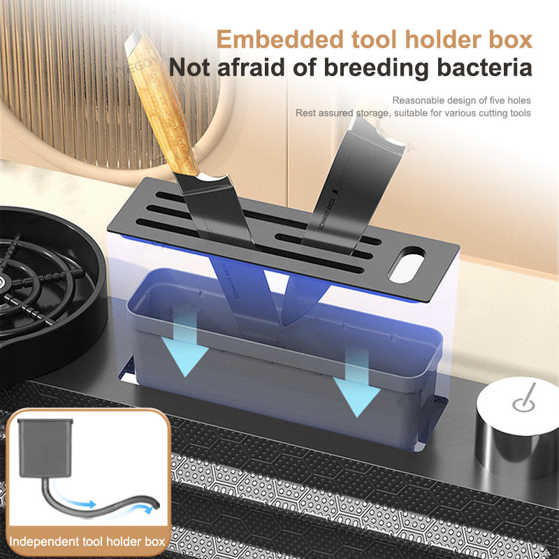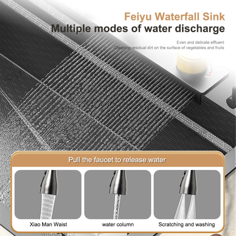 Lavello a cascata cucina in acciaio inox Topmount lavello in rilievo grande singolo Slot lavabo con serbatoio multifunzione a basso prezzo