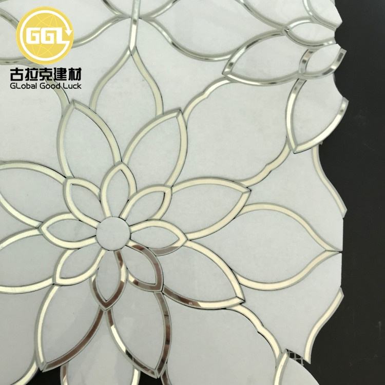 Product Name:Waterjet Mosaic Mirror Glass and Marble Flower Pattern for Wall