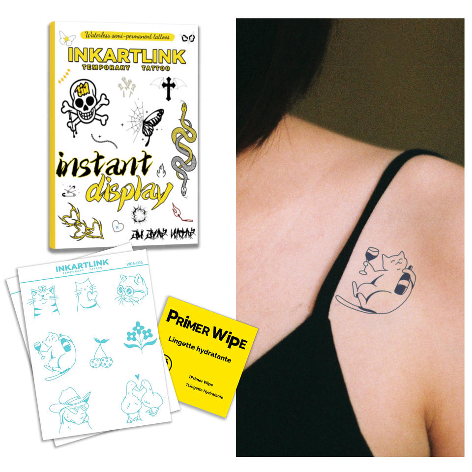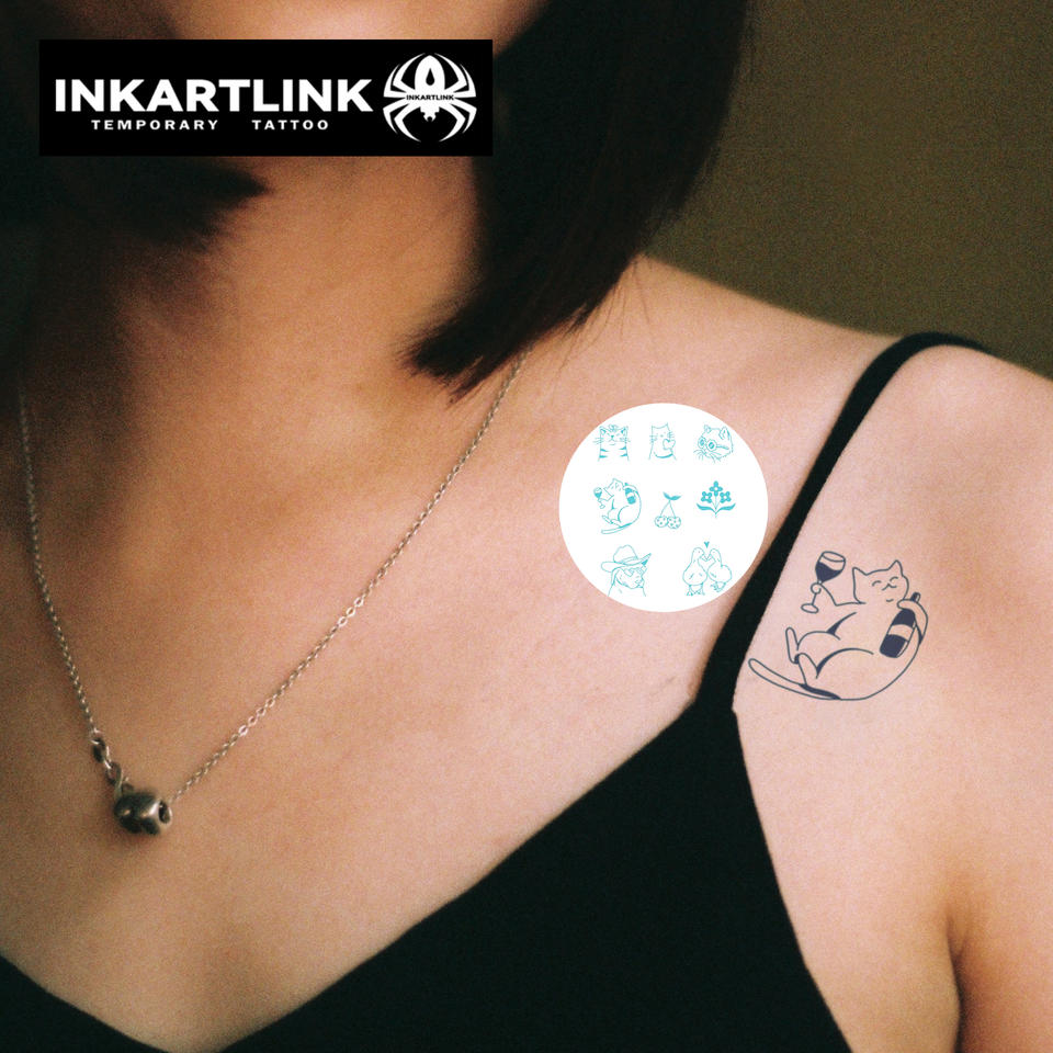 Waterless Cute Cat & Dog Herbal Tattoo Sticker 7 Days Lasting Funny Pet Design Semi-Permanent Temporary Tattoo for Retailers