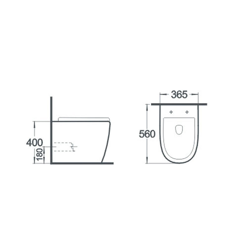 Nome del prodotto:WC a filo muro con scarico a P e sedile con chiusura ammortizzata