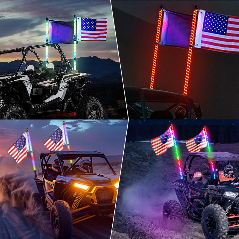 Antenne LED Impermeabili 2FT 3FT 4FT 5FT 6FT con Effetto Inseguimento RGB per Buggy e ATV, Luci COB con Indicatori di Direzione e Luce di Stop