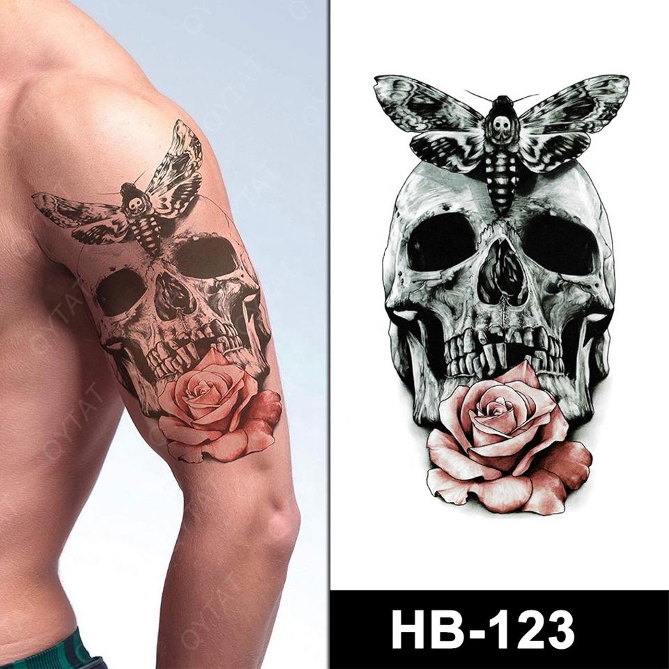 Tatuaggio Temporaneo Impermeabile per Adulti, Scheletro Nero Horror di Halloween, Tatuaggio Tribale per Mani e Braccia