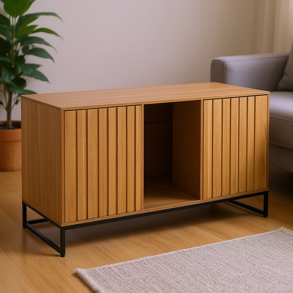 Cat Litter Box Enclosure Furniture 47.2 In Bamboo Wooden Waterproof Hidden Cabinet Storage Cat House Rectangle Shape