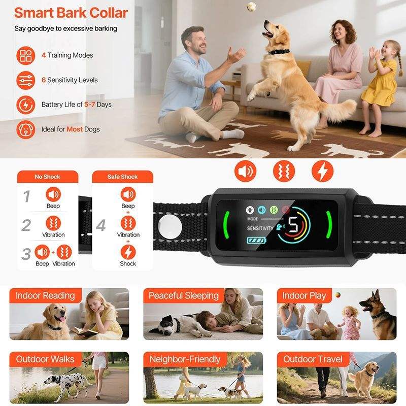 Collare Impermeabile per Addestramento Cani, Ricevitore per Controllo Abbaio