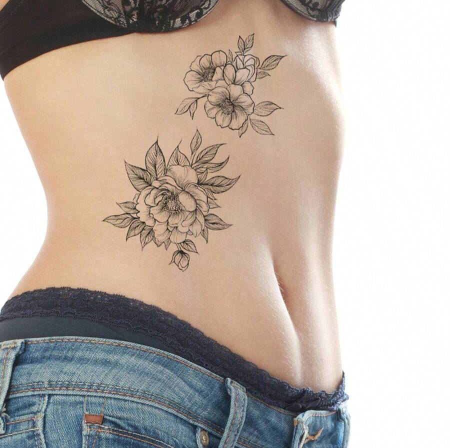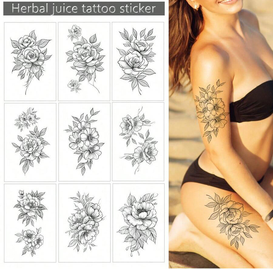 Adesivi per Tatuaggi Temporanei Floreali Eleganti Impermeabili con Inchiostro Nero, Arte Corporea di Lunga Durata per Festival, Ispirati alla Natura, per Viso e Corpo