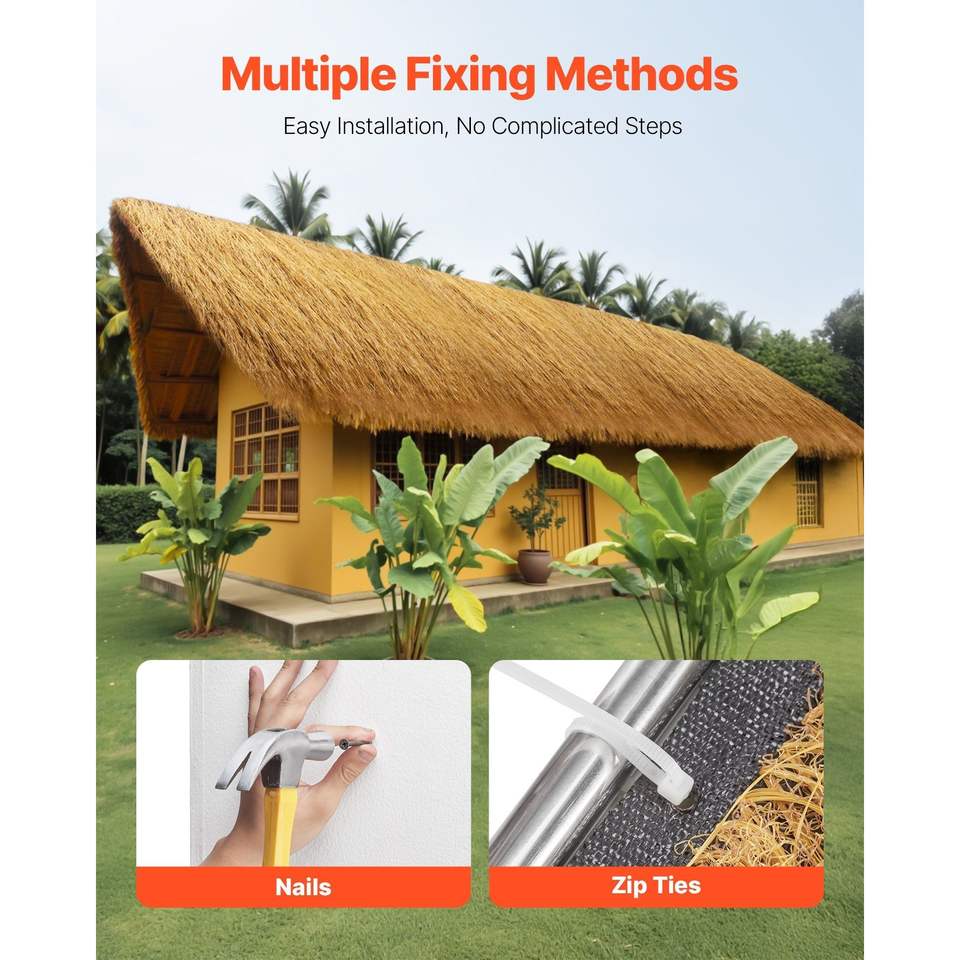 Rotolo di Tetto in Erba Sintetica Impermeabile e Ignifuga 1.6 x 19.7 piedi per Tiki Bar, Capanne e Palapa - Ideale per Teli da Esterno