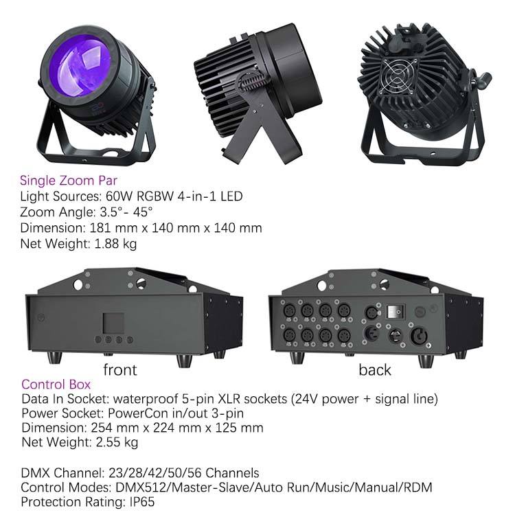 Impermeabile IP65 8 pz 60W LED 4-in-1 RGBW effetto palcoscenico DMX Par LED luce Zoom LED Par Outdoor