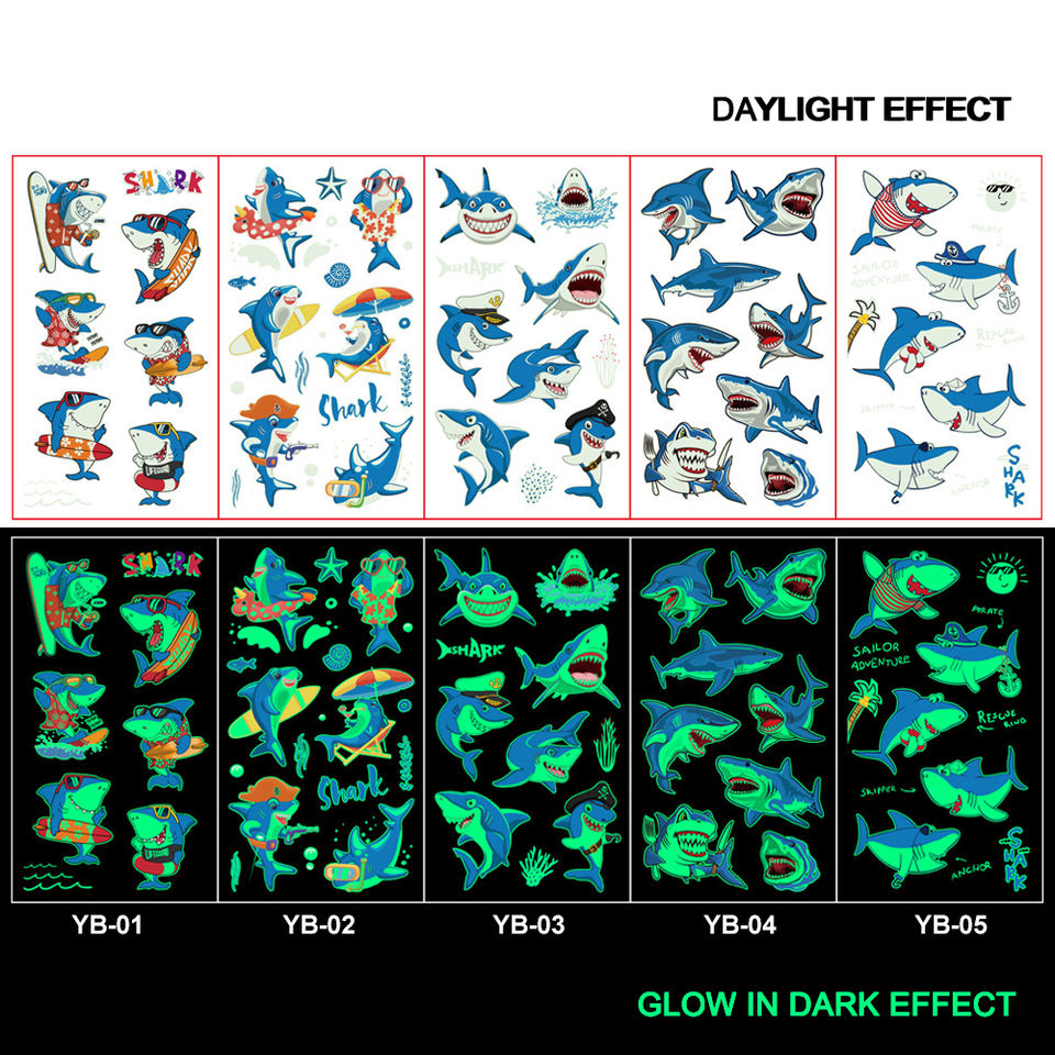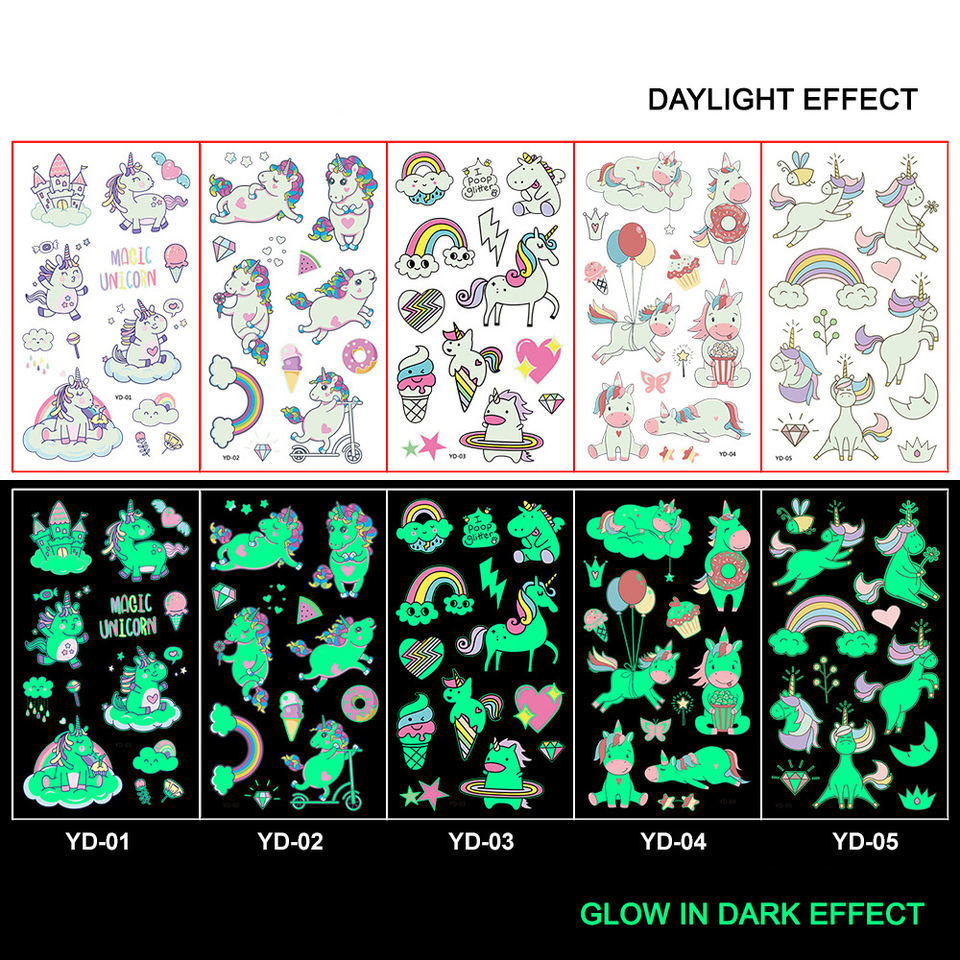 Impermeabile ocean animal unicorn Glow in dark sheet tatuaggio al neon temporaneo per bambini