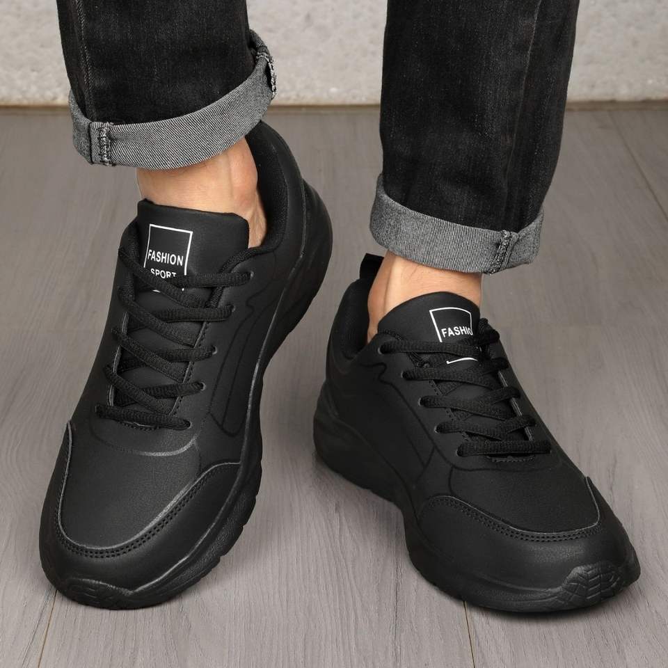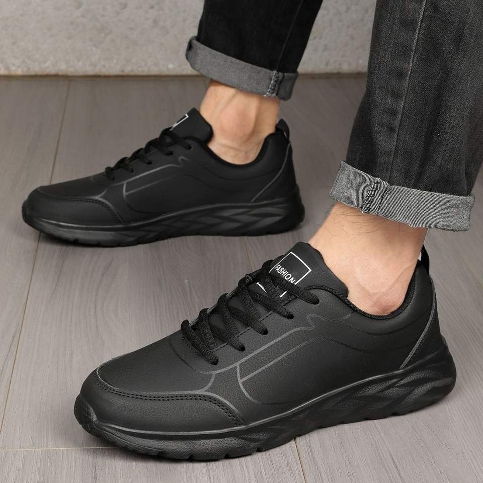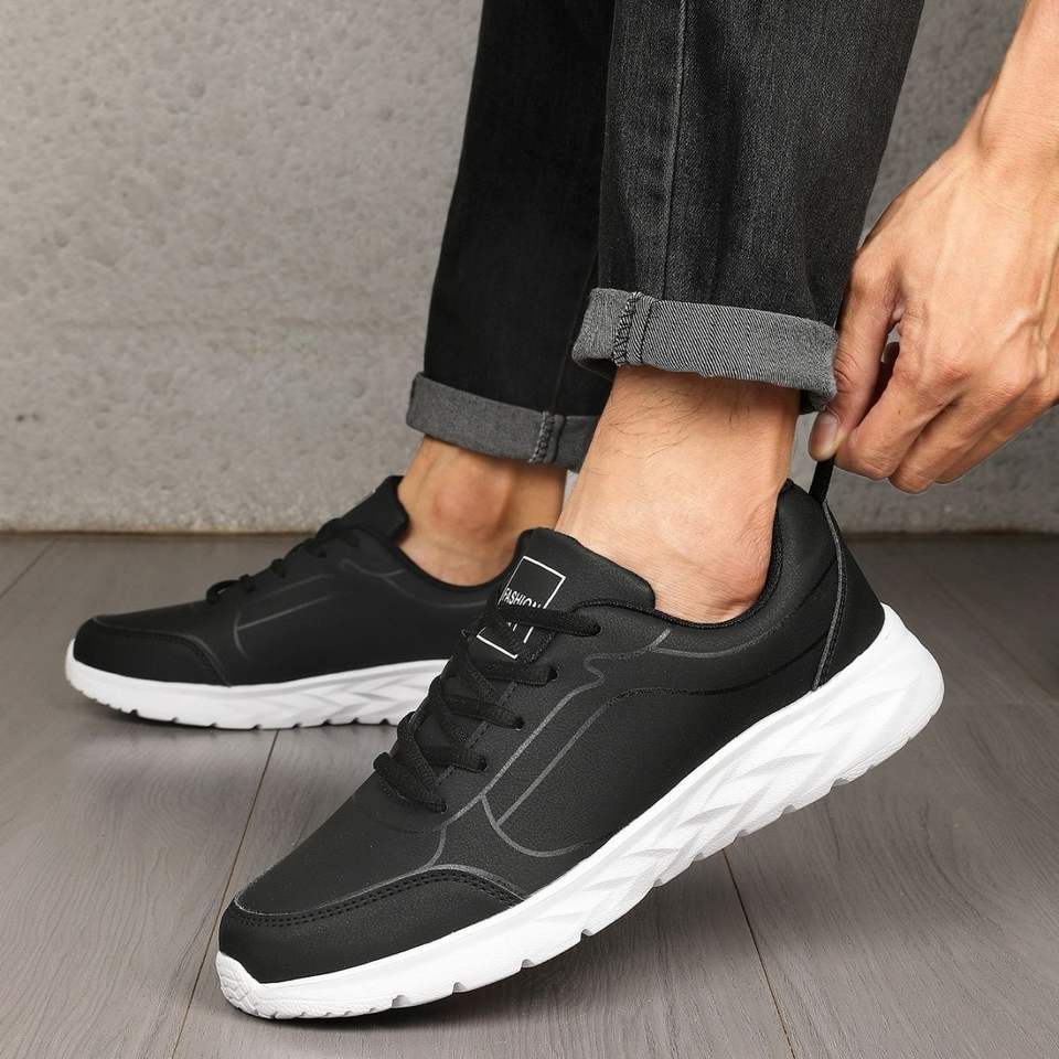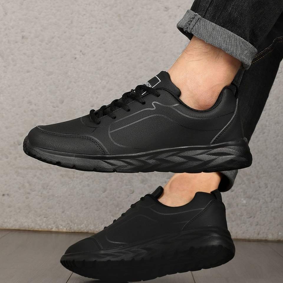 Scarpe da Passeggio Nere da Uomo con Suola in EVA Leggera e Tomaia in PU Impermeabile, Taglie Extra Large, Sneakers da Jogging Ammortizzate