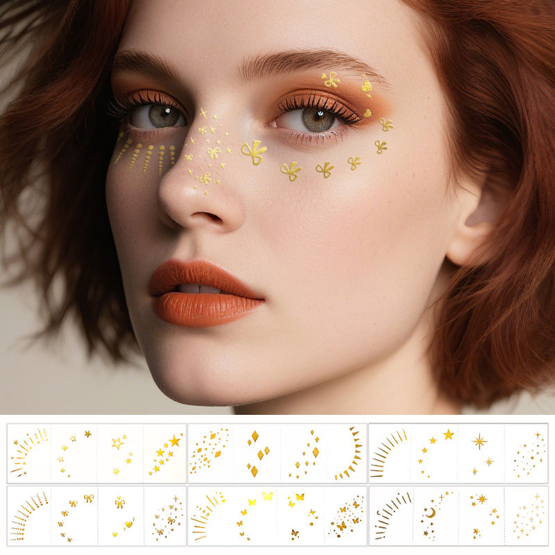 Tatuaggi Temporanei Impermeabili a Forma di Stella con Glitter, Decorazioni Luccicanti per Carnevale, Adesivi per Lentiggini