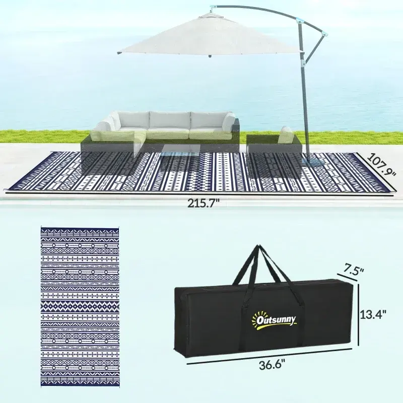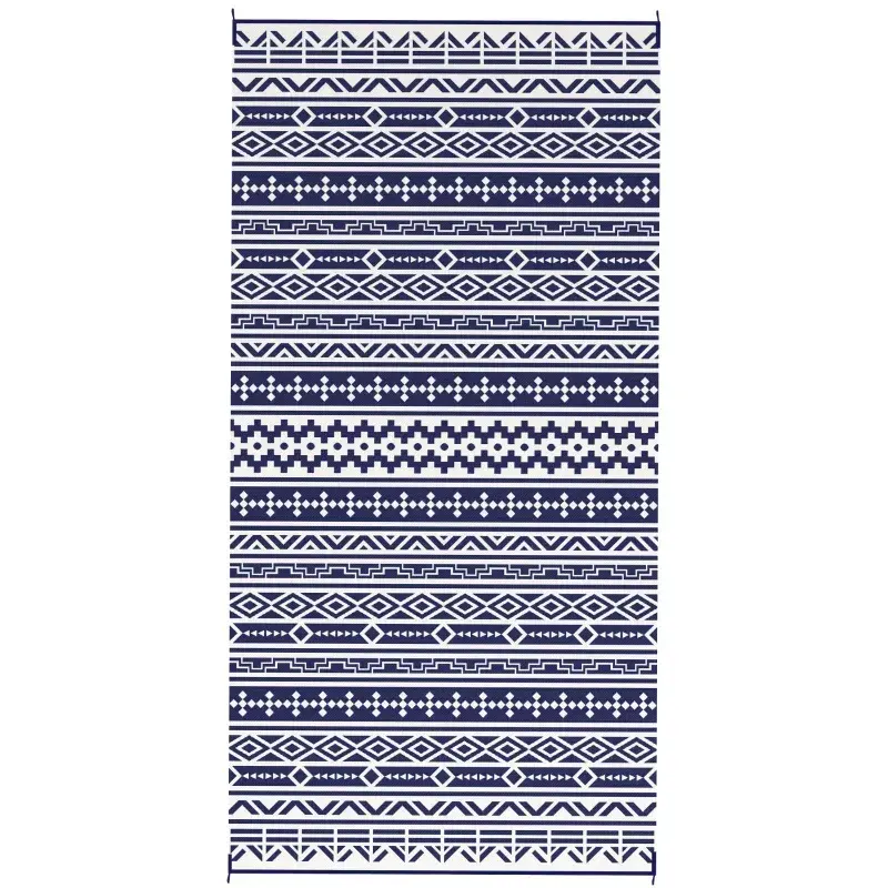 Tappeto da Esterno Impermeabile Reversibile Blu e Bianco con Design Geometrico, 9 x 18 Pollici, con Borsa per il Trasporto