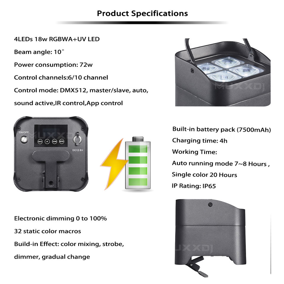 Impermeabile S4 Mini Par IP65 4*18w RGBWA + UV Led senza fili con illuminazione a batteria senza fili Dmx telecomando App Dj Wedding Light