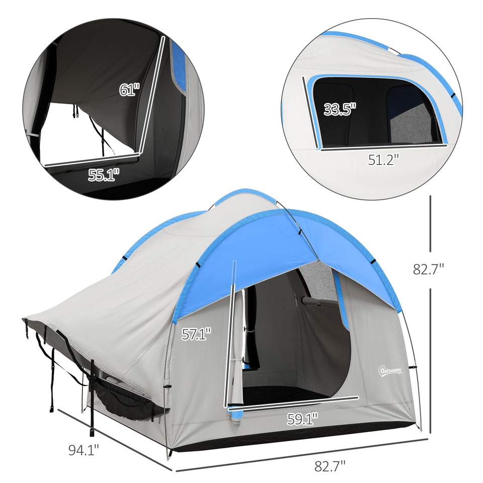 Tenda Impermeabile per SUV 2000mm con 3 Porte e Finestra a Rete Grigia e Blu per Campeggio e Viaggi 5-6 Persone