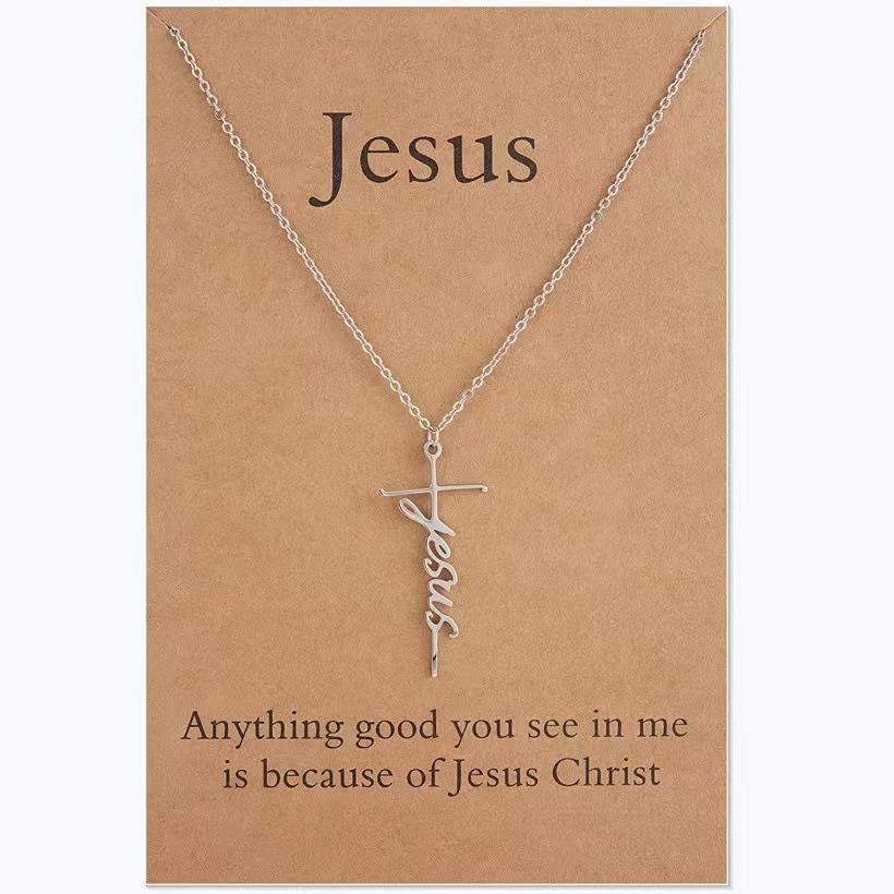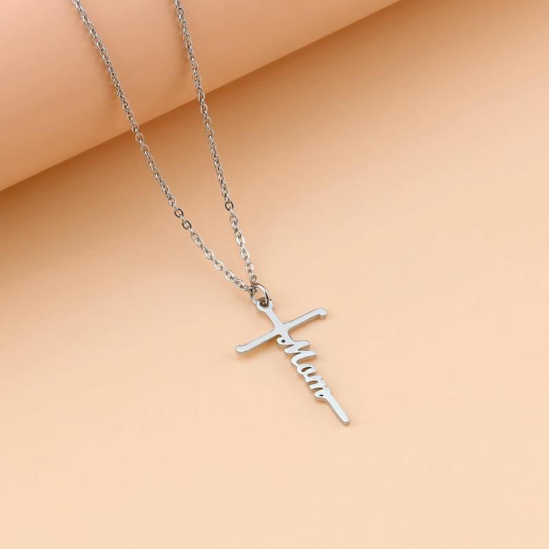 Waterproof Silver Jesus Cross Pendant Stainless Steel Necklace Gift Name Carving Fine Fashion Jewelry Necklaces for Men Women