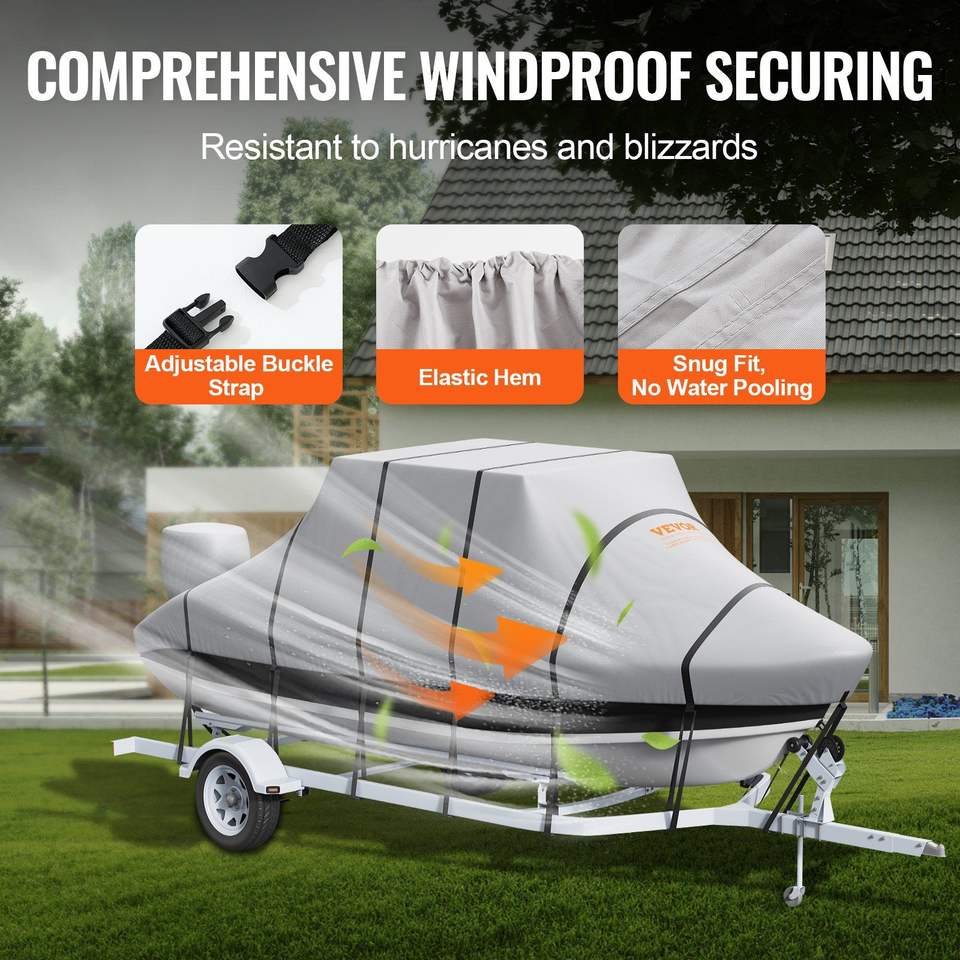 Waterproof T-Top Boat Cover for 20-22 Trailerable Boats 600D Marine Grade PU Oxford Windproof Buckle Straps New 2023 Model