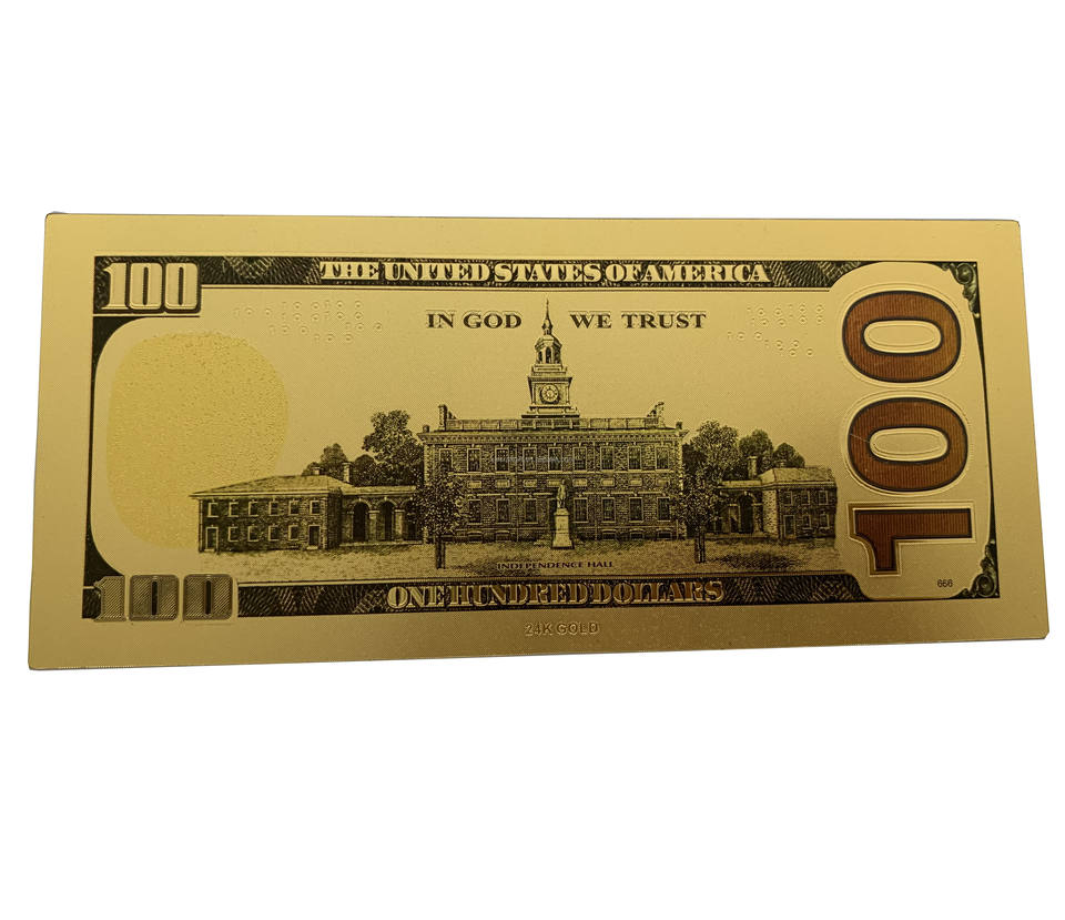 Banconota Impermeabile da Cento Dollari Statunitensi $100 Placcata in Foglia d'Oro