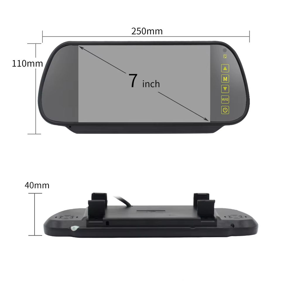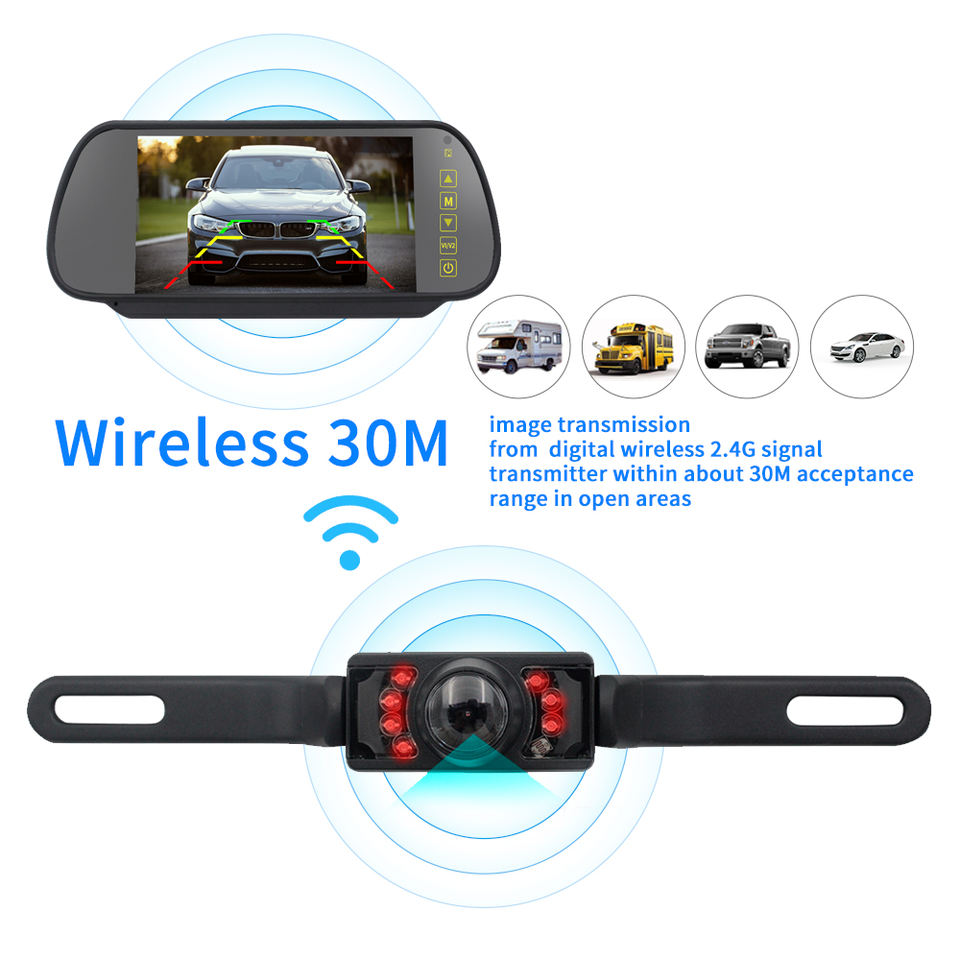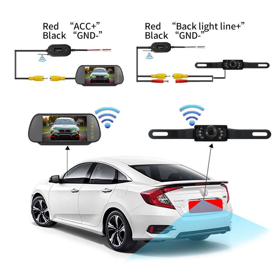 Kit Telecamera Retromarcia Wireless IR per Auto con Monitor LCD a Specchio da 7 Pollici, Impermeabile e con Visione Notturna