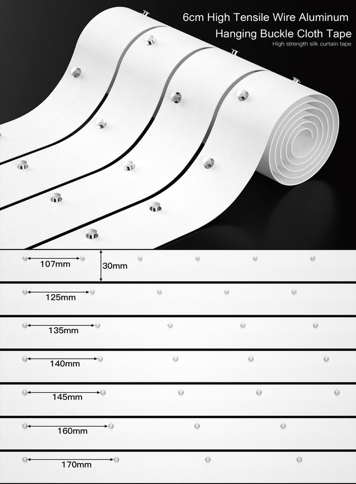 Nastro per tenda pieghevole a onda con tessuto in poliestere bianco da 6 CM e accessorio per tenda con gancio-blocco solare