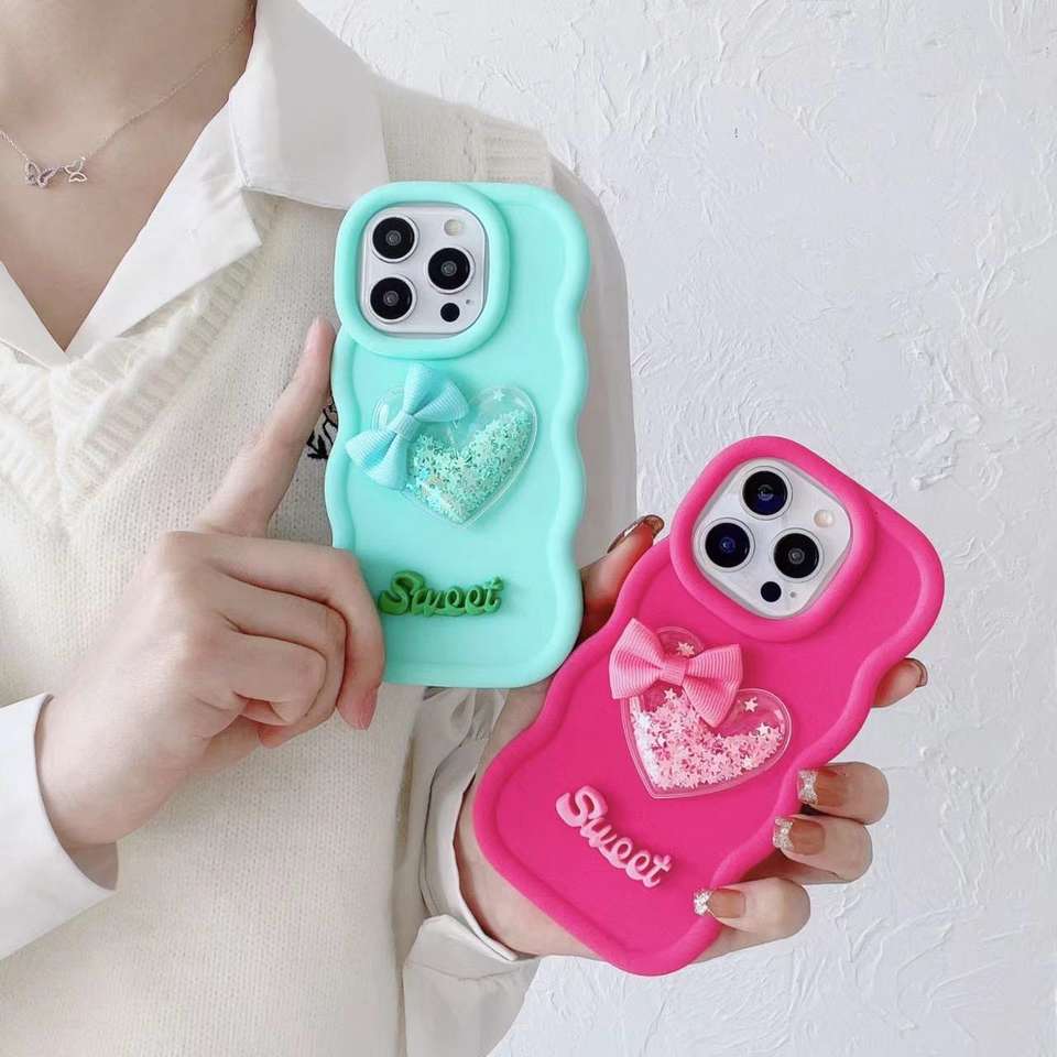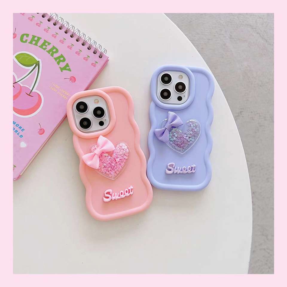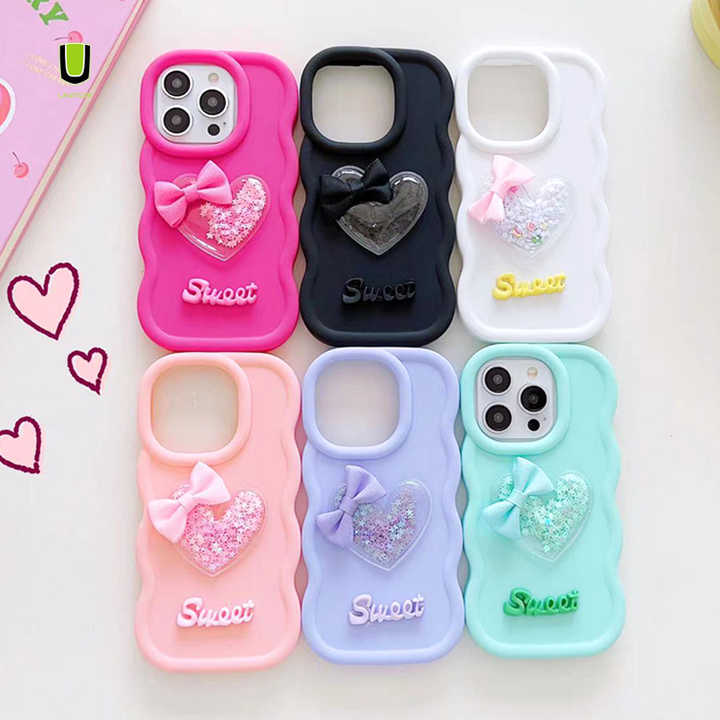 Articolo:Cover ondulata del telefono con fiocco glitterato dolce amore cuore liquido decorazione