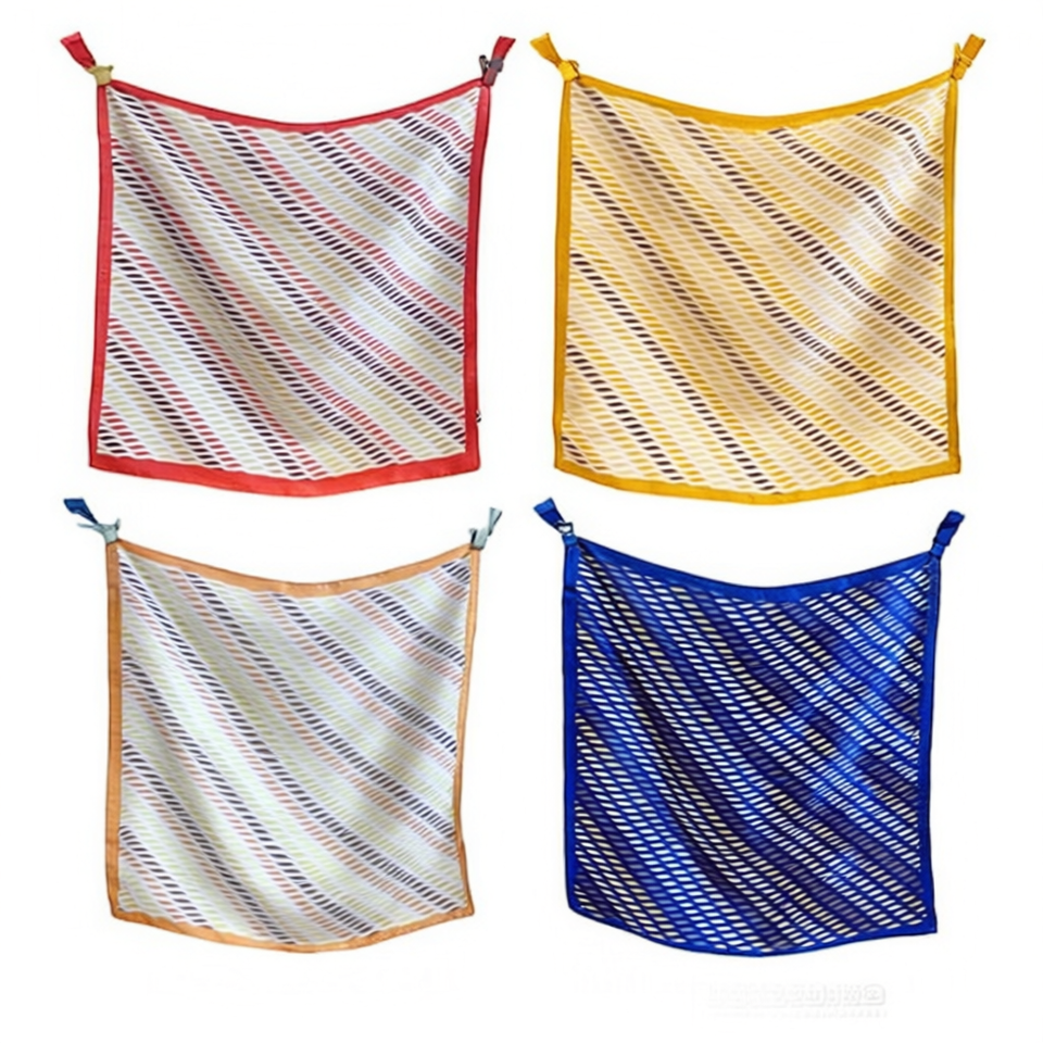 Foulard Quadrato Piccolo a Righe Ondulate 70x70cm Accessorio Moda Donna