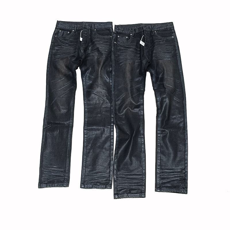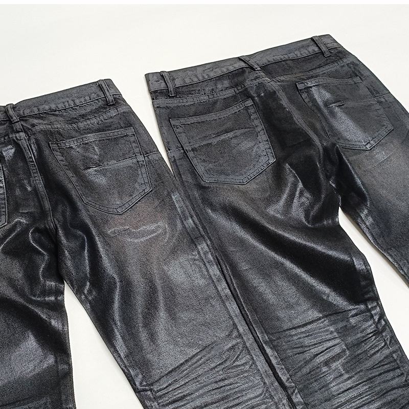 Jeans Neri da Uomo in Denim Cerato Ghost Claw, a Vita Media, Slim Fit, Gamba Dritta, con Dettaglio a Orecchio di Gatto, Stile High Street, Collezione Autunnale