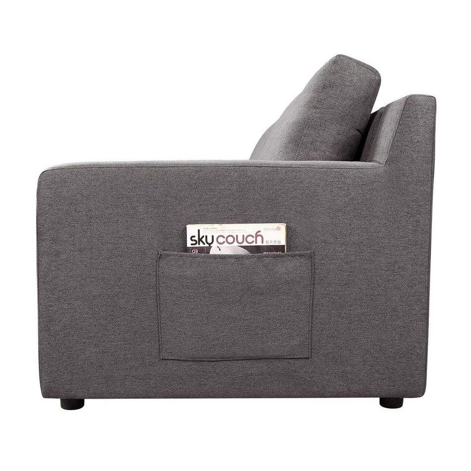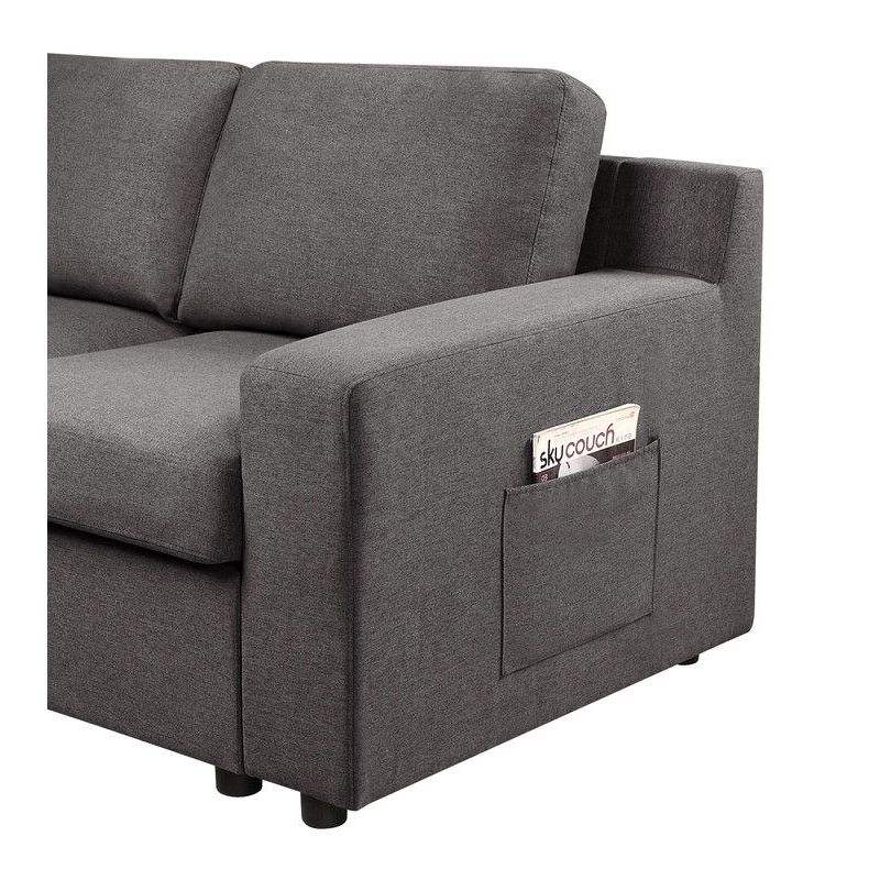Divano Sezionale a U Waylon 145.5'' in Lino Grigio a 7 Posti con Chaise Longue e Tasca per Soggiorno