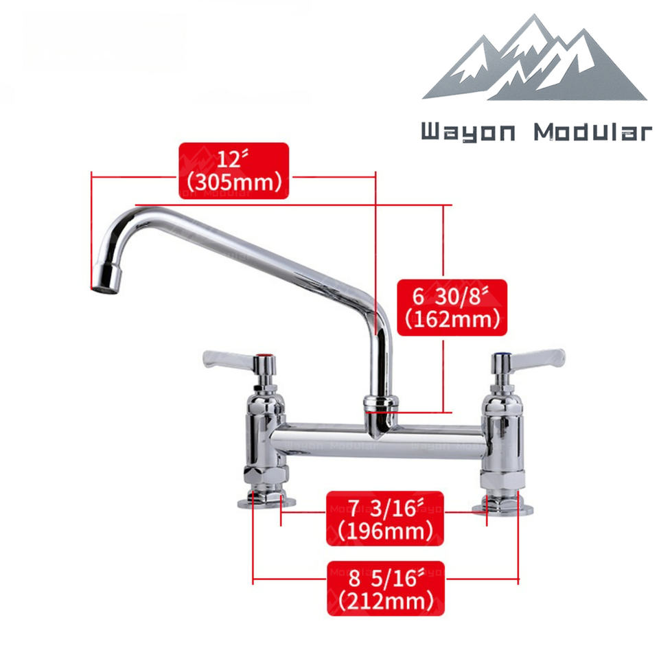 Wayon commerciale a doppia maniglia rubinetto in ottone 8 pollici beccuccio a battente disegno industriale montaggio a ponte per lavello cucina rubinetti per acqua 2 fori