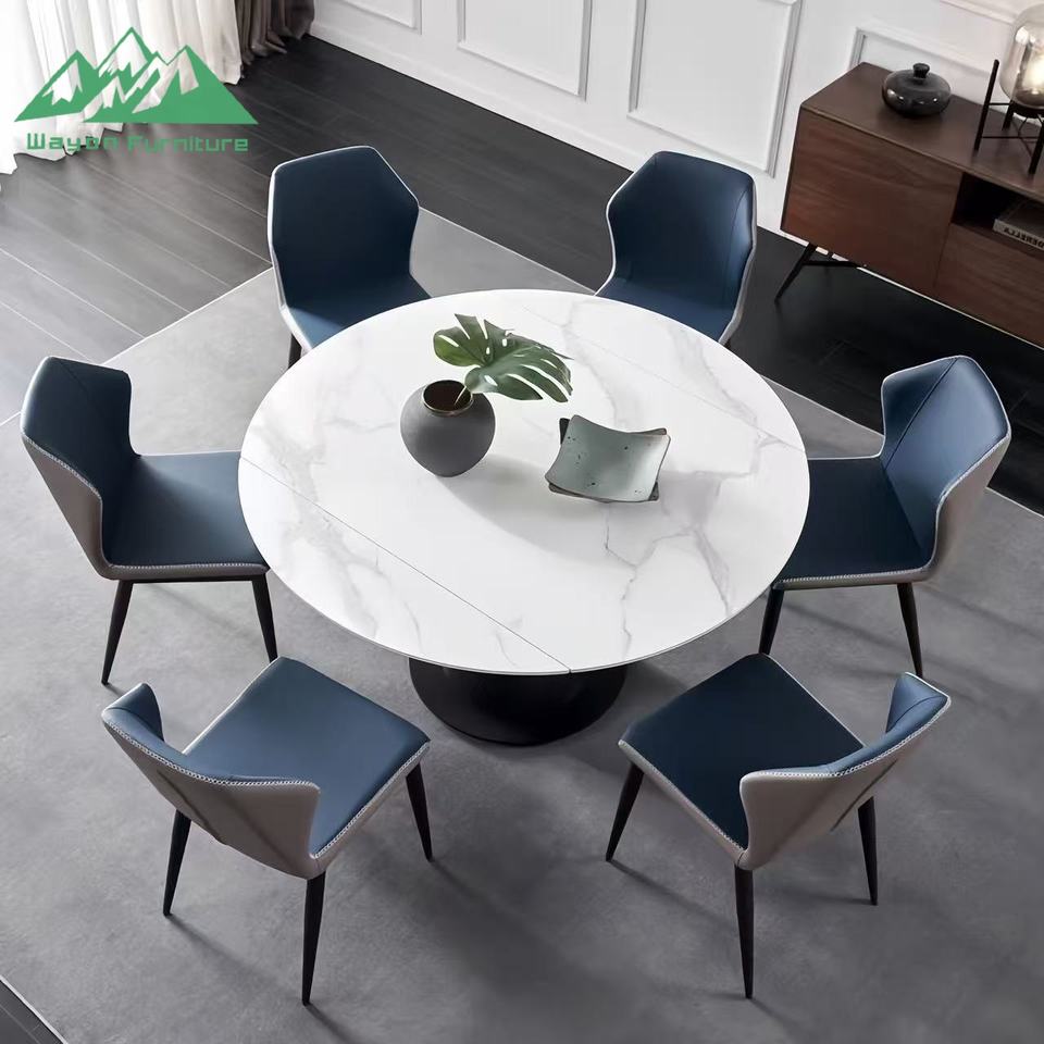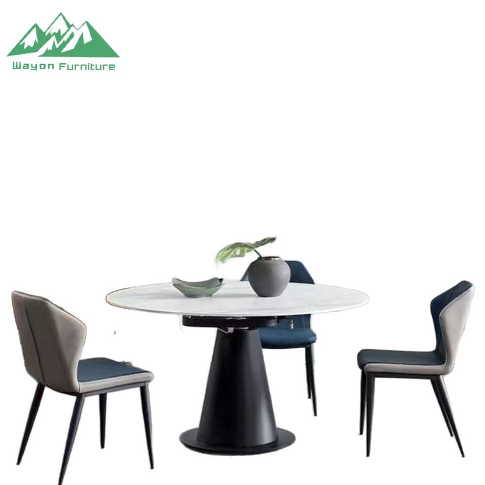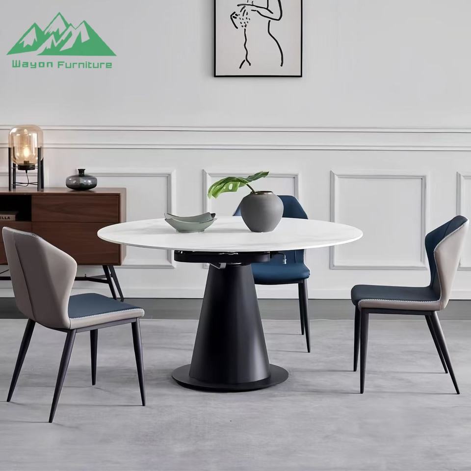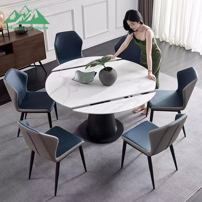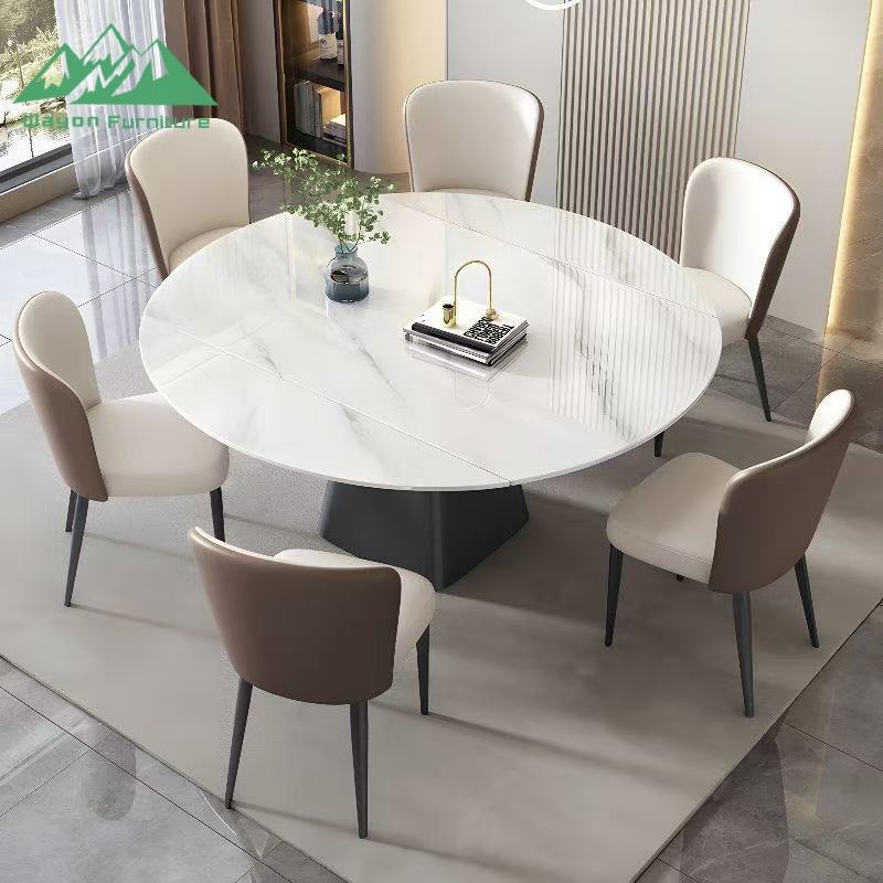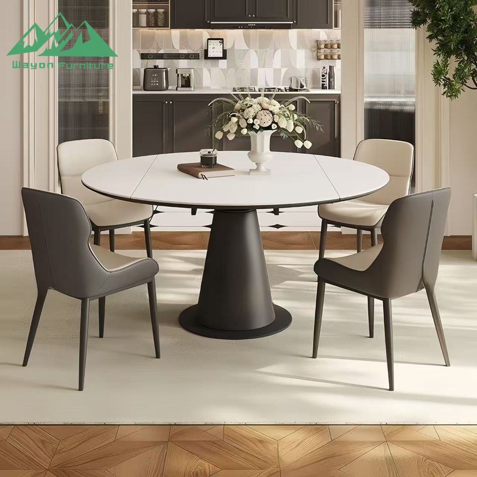 Tavolo da Pranzo di Lusso Wayon in Pietra Sinterizzata Lucida, Tavolo Moderno Italiano Rotante ed Estensibile, da Rotondo a Quadrato Pieghevole
